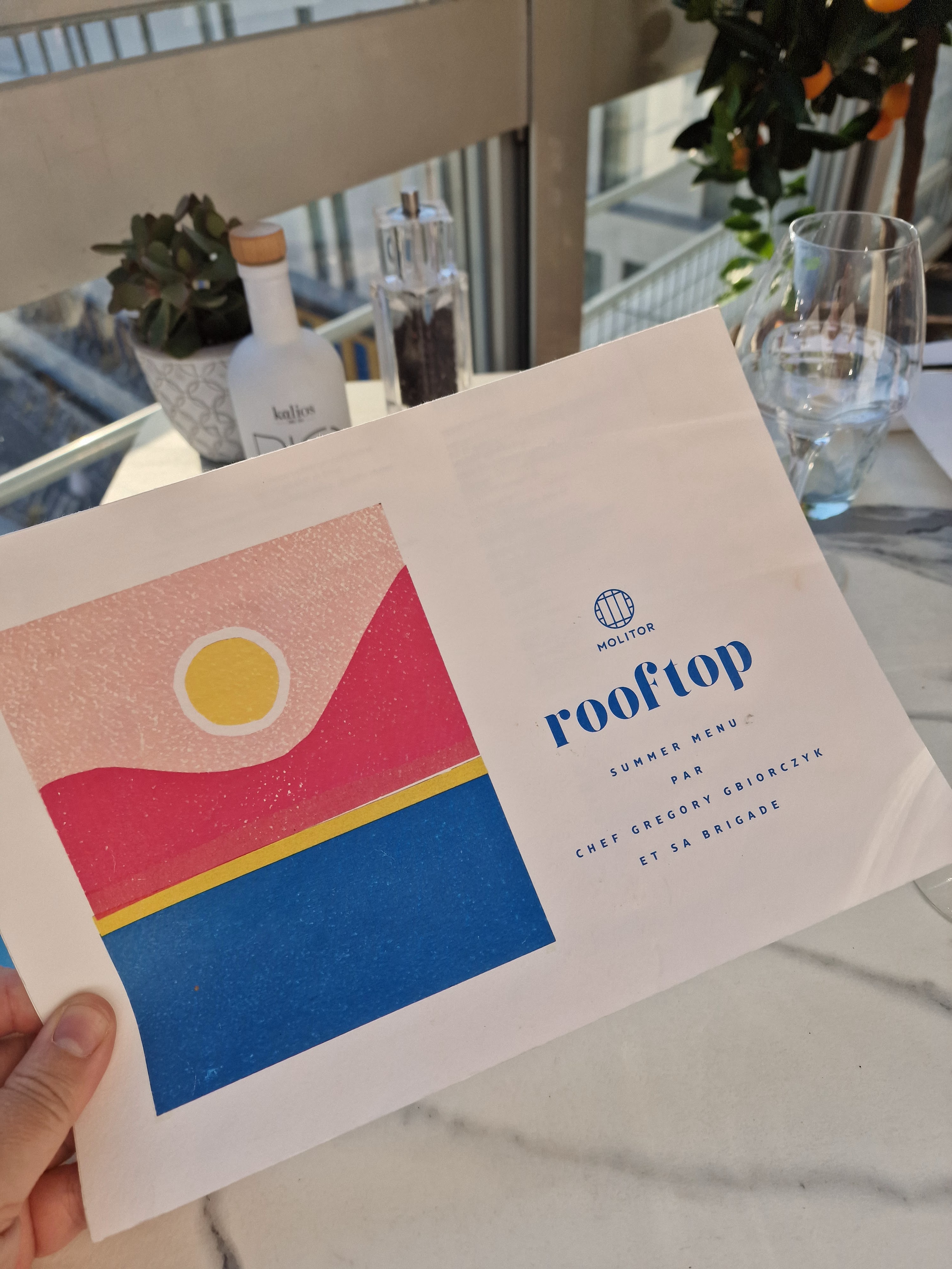 Ma seconde visite depuis bien des années, pour le service de midi, en l'honneur de mon adorable petite sœur, 38ans ça se trinque. 11/07. J'arrive le premier sur place, l'équipe ne trouve pas la réservation. Le pire ma sœur a appelé pour dire qu'elle serait en retard. Je vous passe les détails, nous arrivons finalement sur ce magnifique rooftop, baigné de soleil. Là encore l'équipe ne trouve pas la résa.... Ils nous installent, prennent en main le bouquet que j'ai offert à la princesse du jour, il faisait vraiment chaud. Je commande deux coupes de champagne, surprise, ils nous sont offerts, voyant que nous célébrions quelque chose. Le déjeuner se passe super bien, mais devant repartir au boulot je demande avec insistance l'addition. Je finis presque par m'agacer du temps perdu, et voilà que l'équipe arrive avec un dessert + bougie que nous n'avions pas commander.... j'ai eu aussi un dessert... ils ont surpassé nos attentes et finissons par rester un peu plus... vraiment adorable, ça avait très mal commencé mais waou que dire....ils ont tout mis en scène pour rendre ce dejeuner inoubliable...un grand merci au molitor et à très vite...