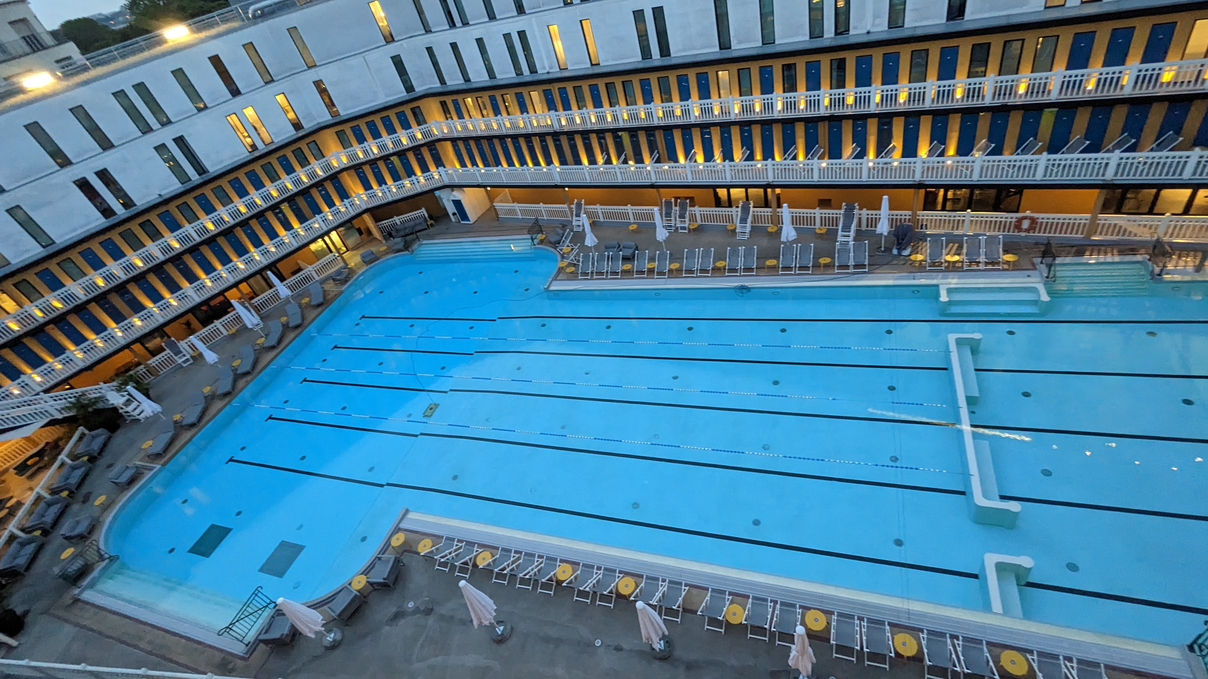 Ce lieu est superbe, on se sent complètement dépaysé, on est à deux pas de chez nous et ailleurs en même temps. Accueil très agréable, on a beaucoup apprécié ce délicieux dîner, du début à la fin. Vues magnifiques depuis la terrasse au 4ème étage. Mon enfant était émerveillé par la superbe vue de la piscine la nuit, nous aussi. De nouveau une belle soirée-concert ce soir sur la terrasse pendant le dîner, on a beaucoup apprécié. Bref: parfait.