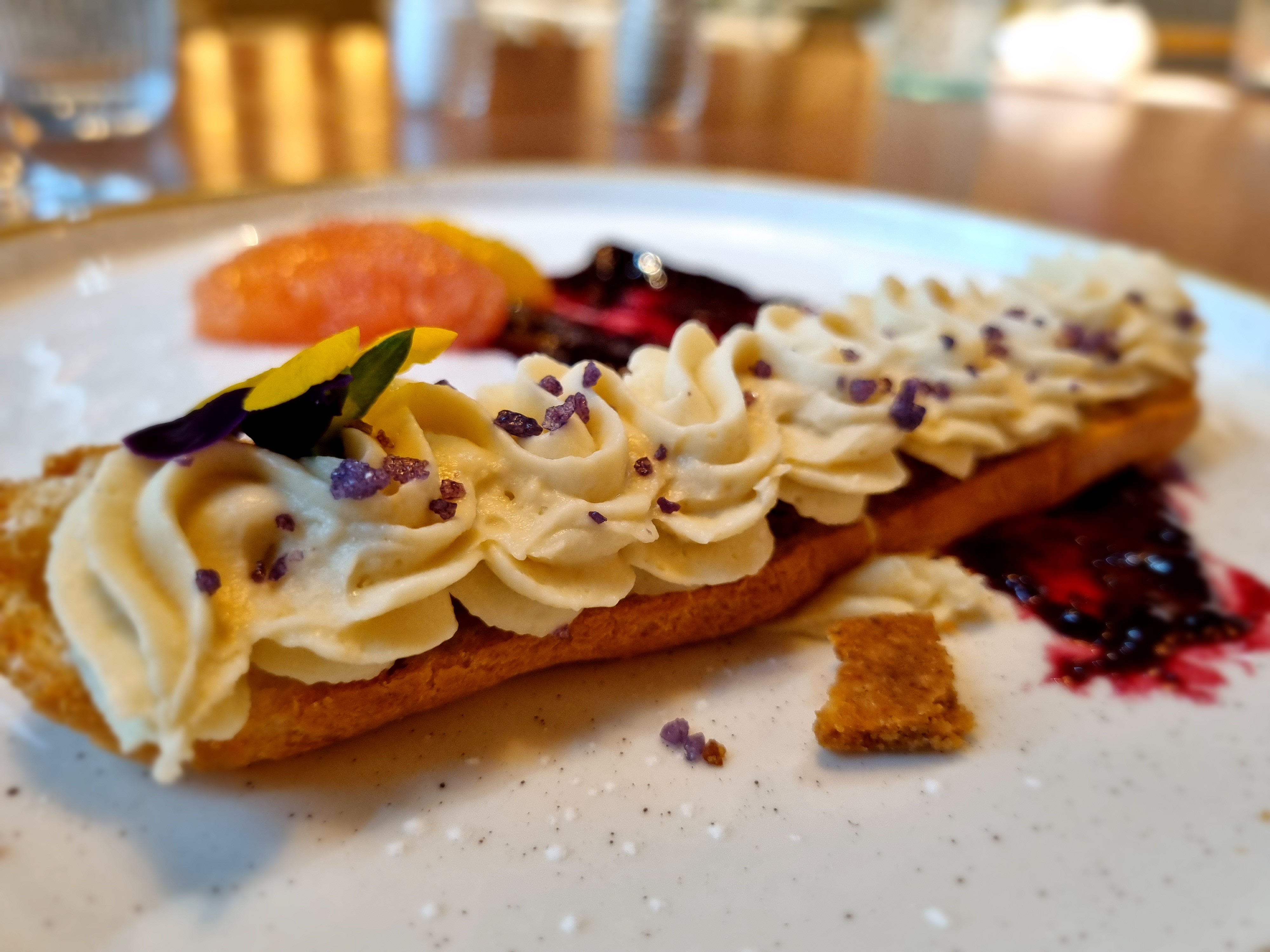 La nourriture et le service étaient spectaculaires !! Mon serveur m'a recommandé un rosé en fonction de mes préférences, et le croque monsieur était délicieux ! La seule chose à savoir est que le restaurant se trouve dans le hall d'un hôtel, à proximité de la zone d'enregistrement des clients, vous pourrez donc voir/entendre un peu plus de bruit que ce que vous feriez normalement dans un restaurant.