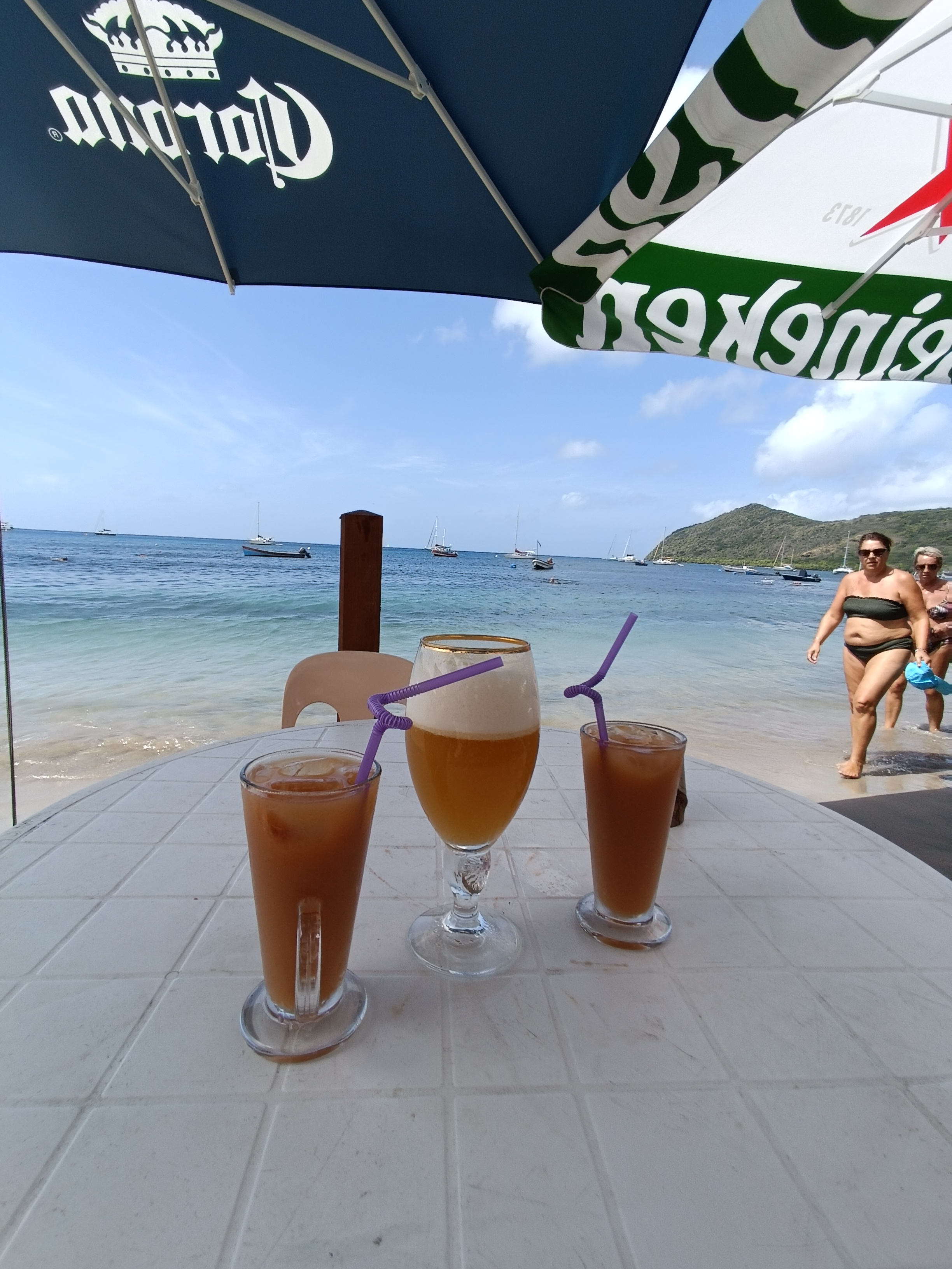 Accostés par la patronne nous nous sommes installés les pieds dans l'eau. Quelques tables prises, sans plus...et là, catastrophe: 1h30 pour s'être vus servir une bouteille d'eau et une pauvre assiette d'acras/brochettes de crevettes. Les tables arrivées après nous ont été servies avant nous (pour le même plat commandé). Sommes donc partis, aucune excuse de la part de la patronne qui nous a fait payer nos conso sans tenter de réparer le préjudice. A FUIR