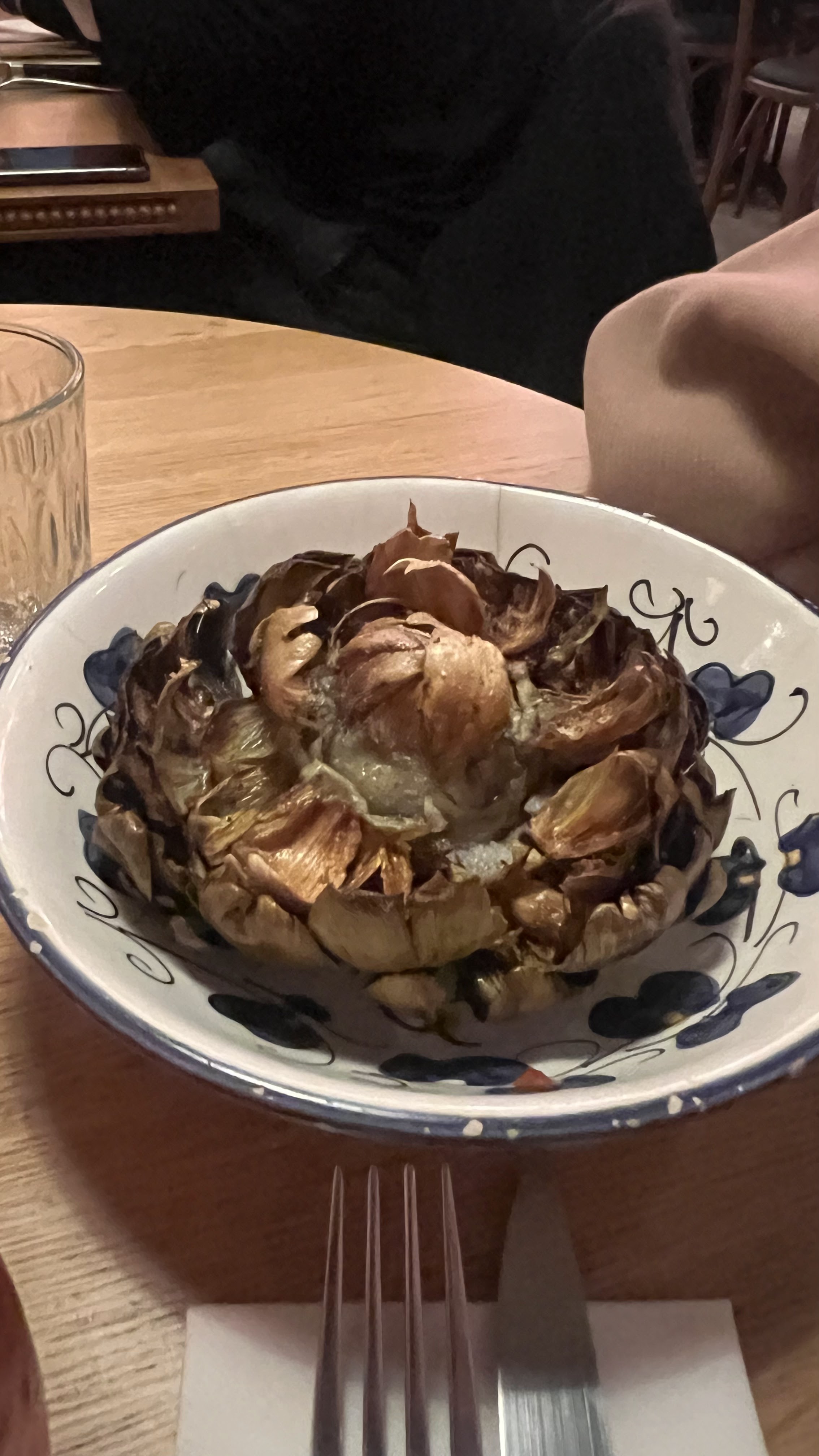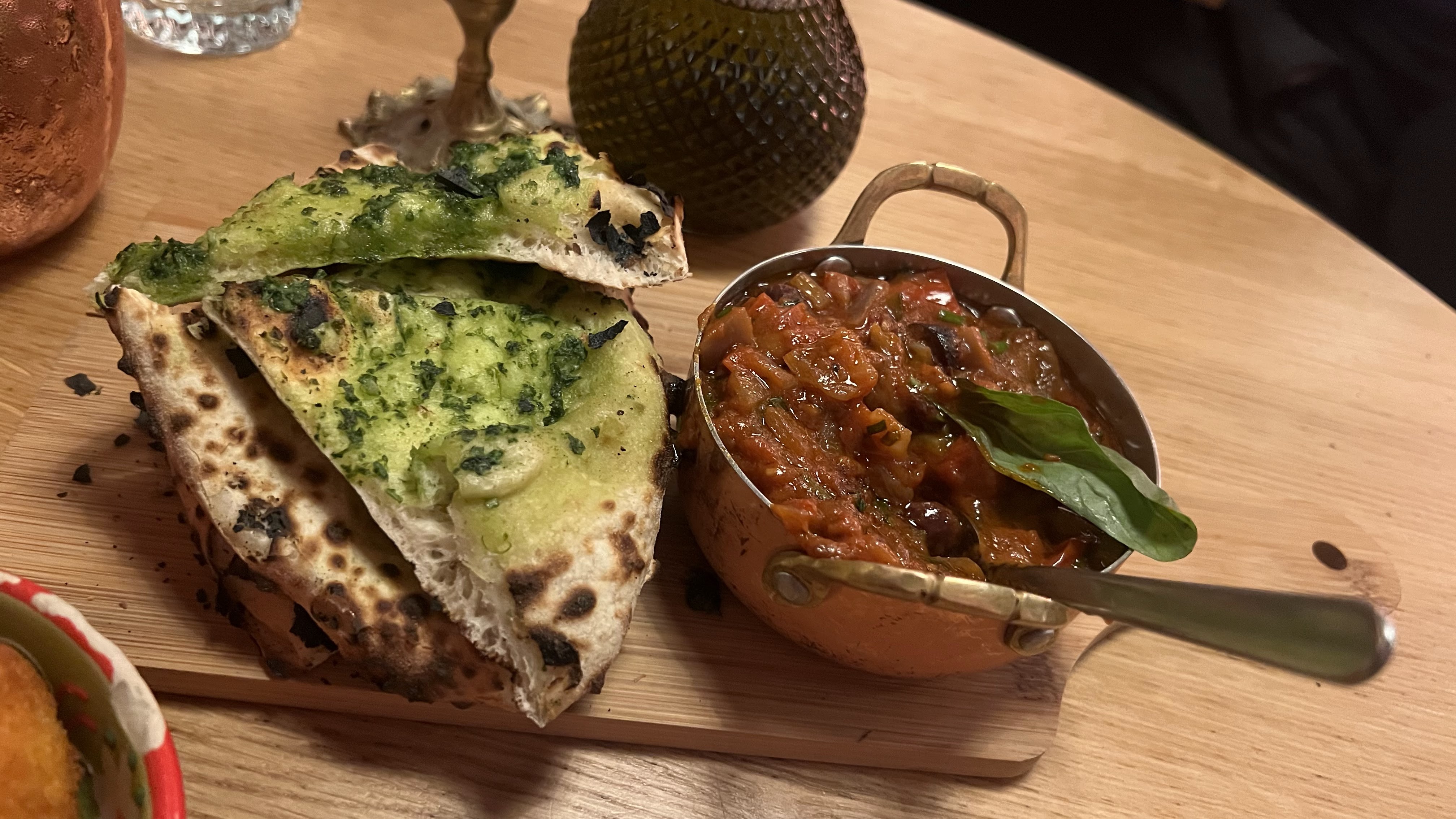 Artichaut imbouffable, croquettes de mozza vraiment moyennes, aubergines bons, addition no way, 75 3 entrees et 2 cocktails.. pour ce que on as mangé cest un vraiment abusé, jamais plus