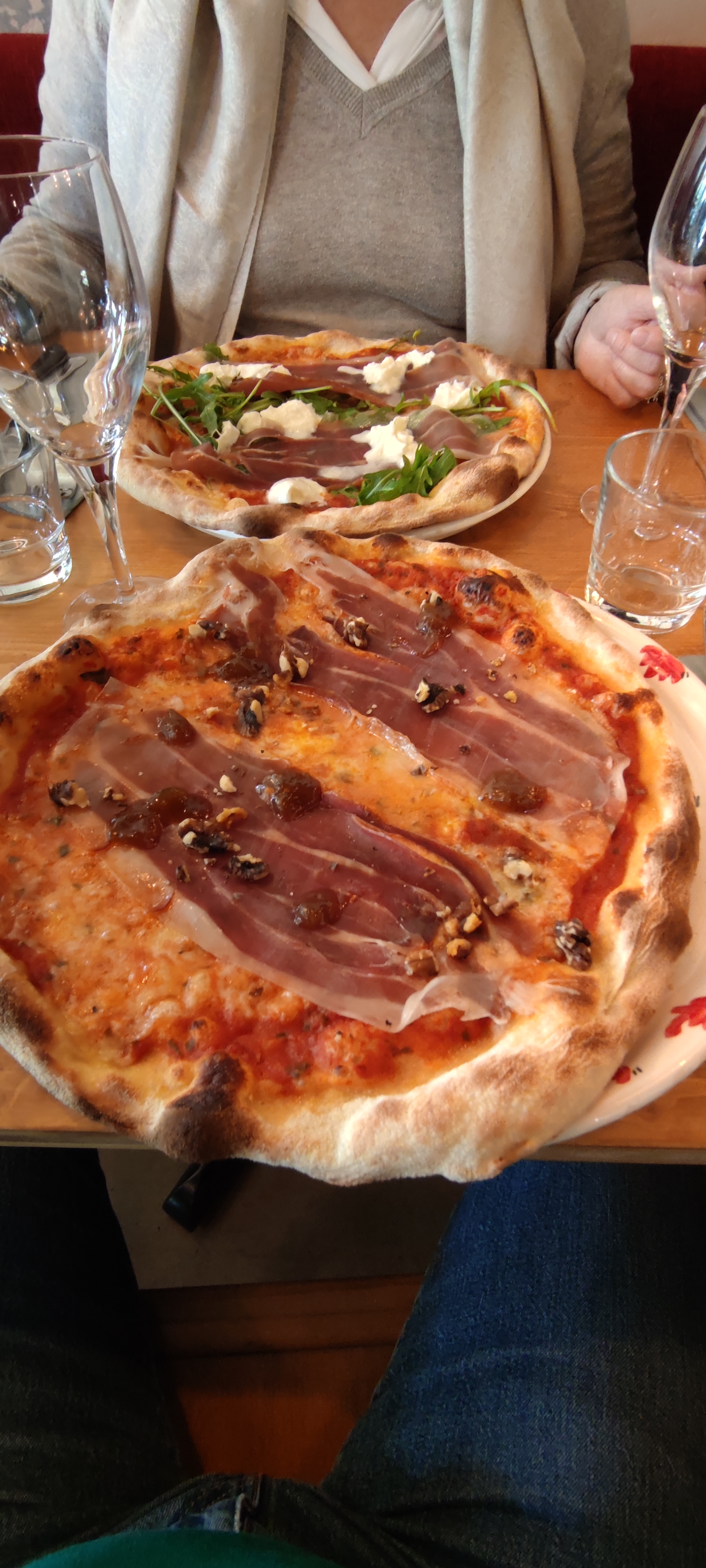 Accueil très sympathique, service efficace et rapide. Pizzas excellentes, sur la photo, en bas pizza Gabriella (avec une touche de figue, bluffant!), En haut, Mia Nonna. Pizzas copieuses et très goûteuses!... Surprise, originale, en se rendant aux toilettes (très propres!) Merci et continuez comme ça!