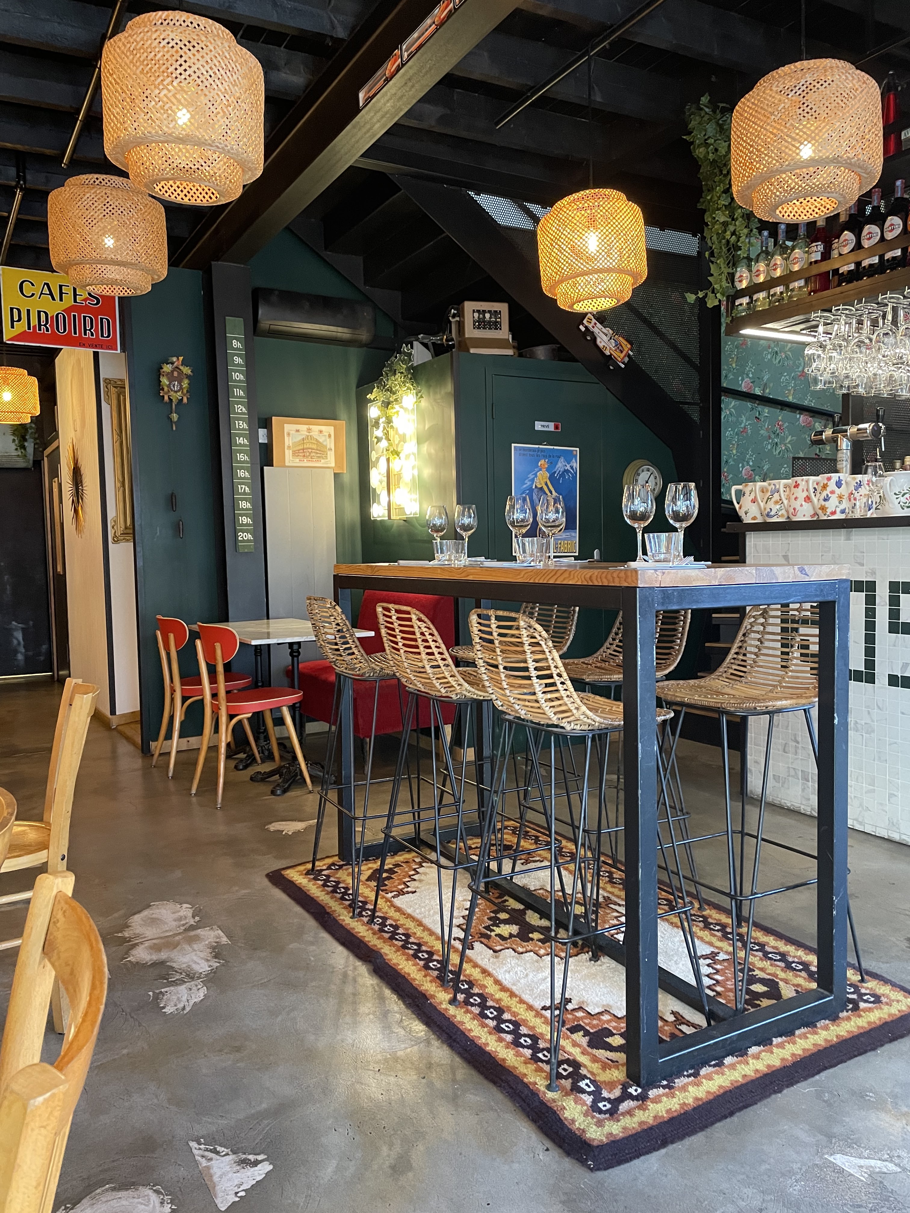 Je recommande pour la carte courte les produits frais de qualités et bien cuisinés. Ainsi qu'une déco de goût Gros bémol : installé des clients à une table le long d'une poutre ne permettant pas d'être à l'aise pour couper son plat est un défaut de rentabilité excessif d'autant que l'étage était accessible. Les chaises hautes ne sont pas confortables. Et pour finir le personnel ne fait pas la différence entre un bar à ambiance et un restaurant. La musique était trop forte pour pouvoir partager un plat de qualité autour d'une table. Aussi chuchoté, ricané tout en observant la salle n'est pas pro. Pour finir je conseillerais à emporter plutôt que sur place.