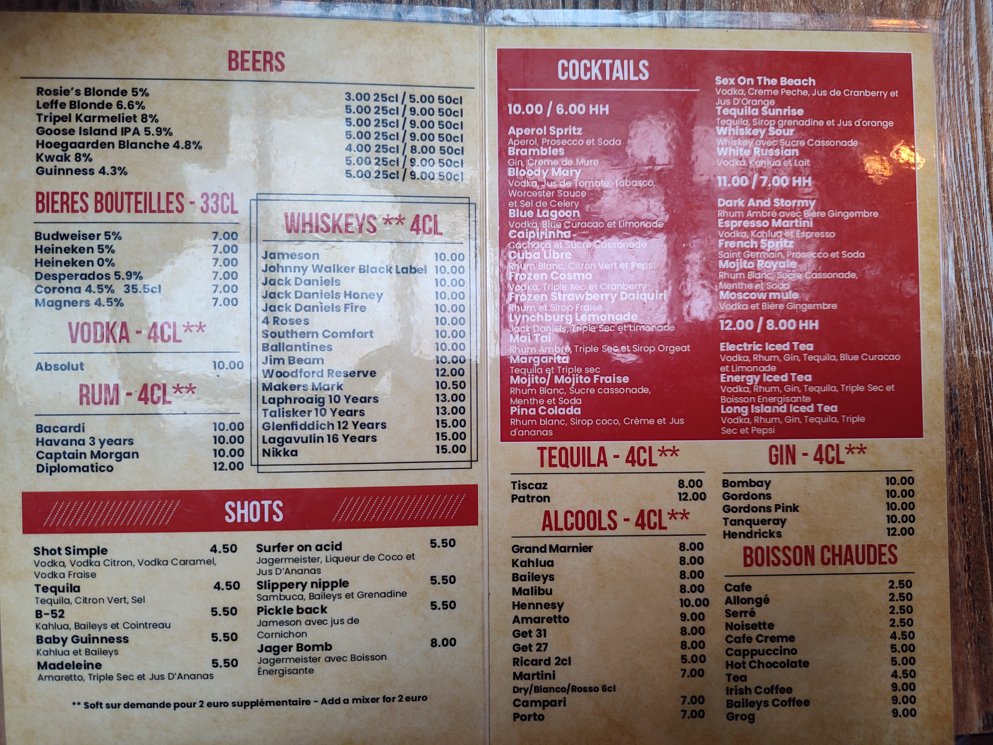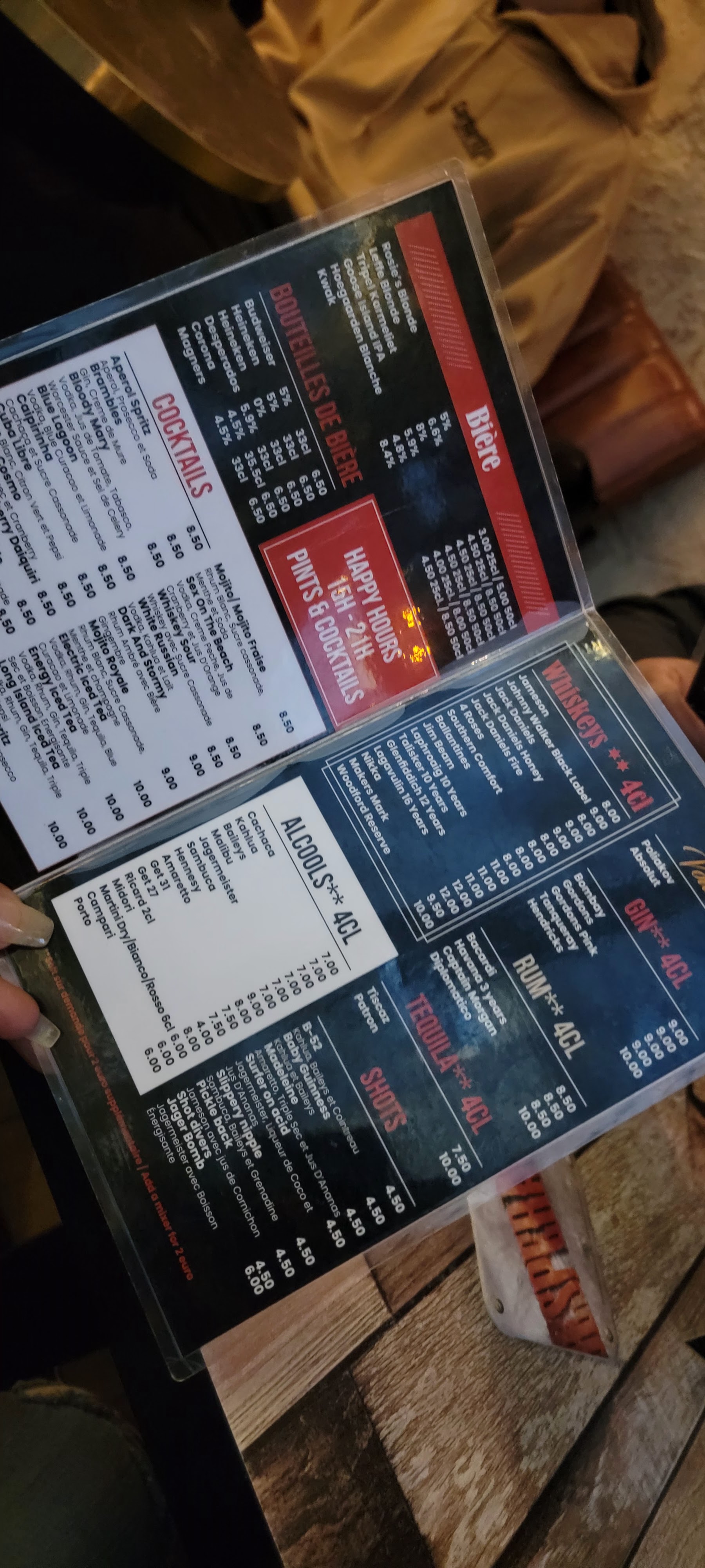 Le barman est plutôt sympa et le lieu très sympa mais étant français je trouve dommage que le barman conseille tout de suite la seule pinte de bière qui coûte moins de 6 euros (5 euros prix normal pour la Lutèce de Paris) au lieu des pintes de bières premium à 8/9 euros aux américains qui étaient assis à côté de nous et demandaient à deux reprises au barman pour être sûr de profiter de l'happy hour !! (= toutes les bières et cocktails à 6 euros...) . Franchement c'est pas cool...