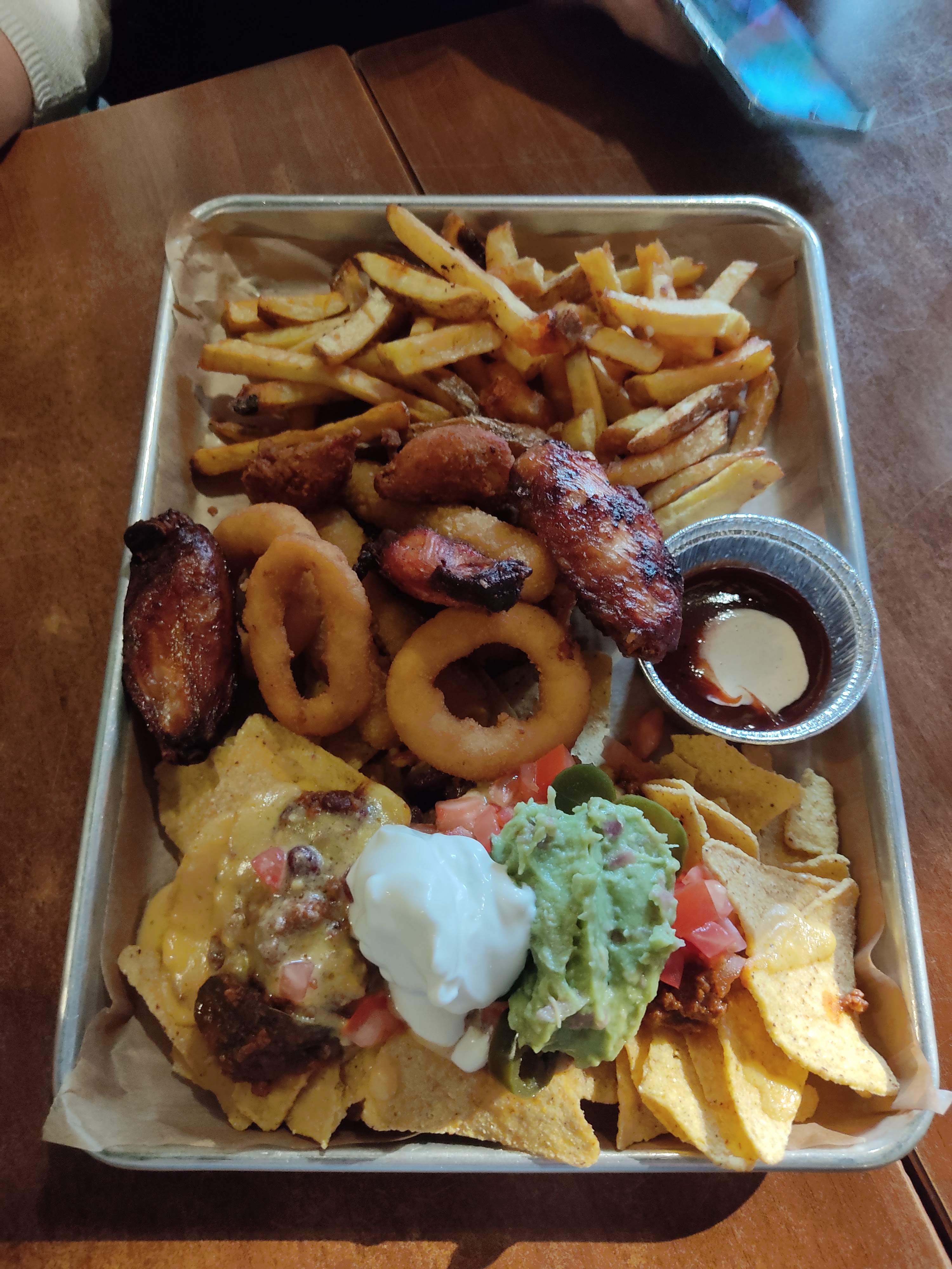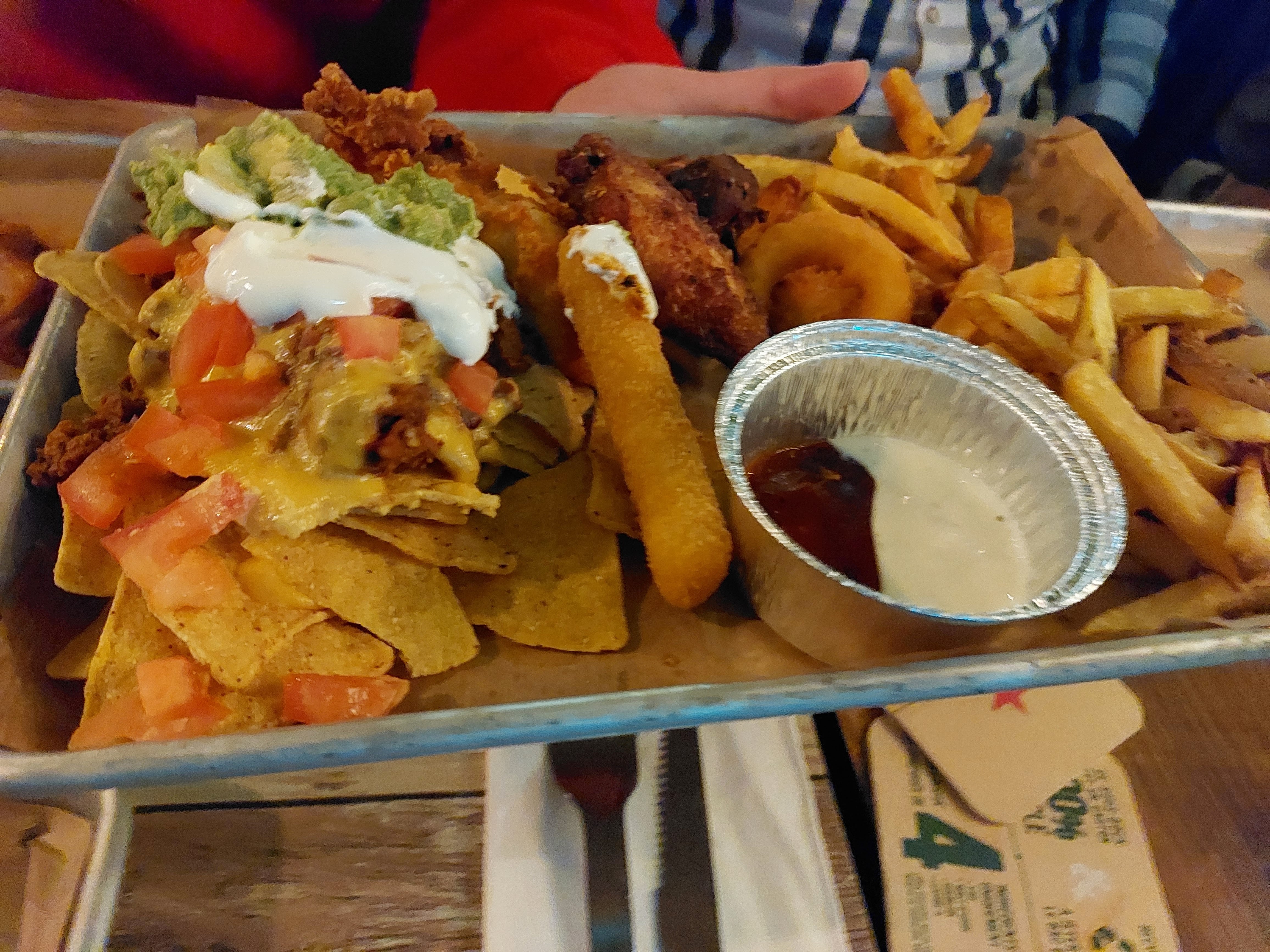 Vraiment pas terrible du tout. Demi poulet qui avait aucun goût, idem pour les ribs et la viande de bœuf. Alors que la viande c'est censé être faite façon BBQ... Se sont les sauces industriels qui font tout le travail. Frites sèches et sans goût également. Il n'y a que les nachos (donc chips industrielles) qui étaient passable. En gros: déception. Par contre point positif, l'équipe est à l'écoute des besoins.