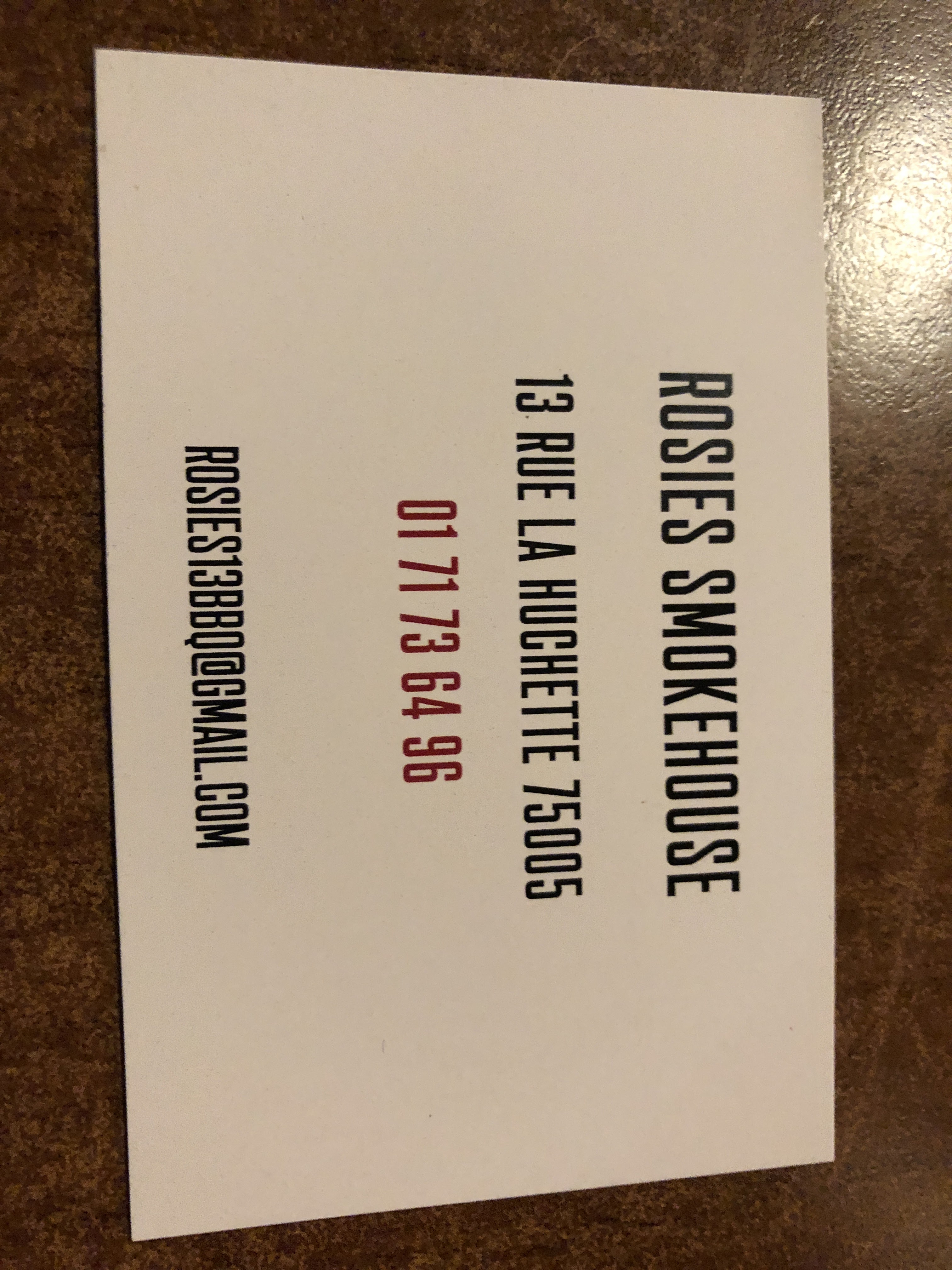 J'ai déjà goûté un certain nombre de restaurant autour des smoke house Texan. Rosies est une belle référence. Le restaurant est grand, le personnel accueillant. Nous avons pu goûter à différents plats. Les Brisket d'après les dires de mes amis sont tendres, nous avons adoré le pulled porc, les saucisses et les sides dishs simples et efficaces. Le seul point d'amelioration est la préparation de la dinde qui de mon point de vu était trop sec et moins goutu en general par rapport aux autres viandes. Ce qui est dommage et mériterait quelques améliorations au niveau de la recette.