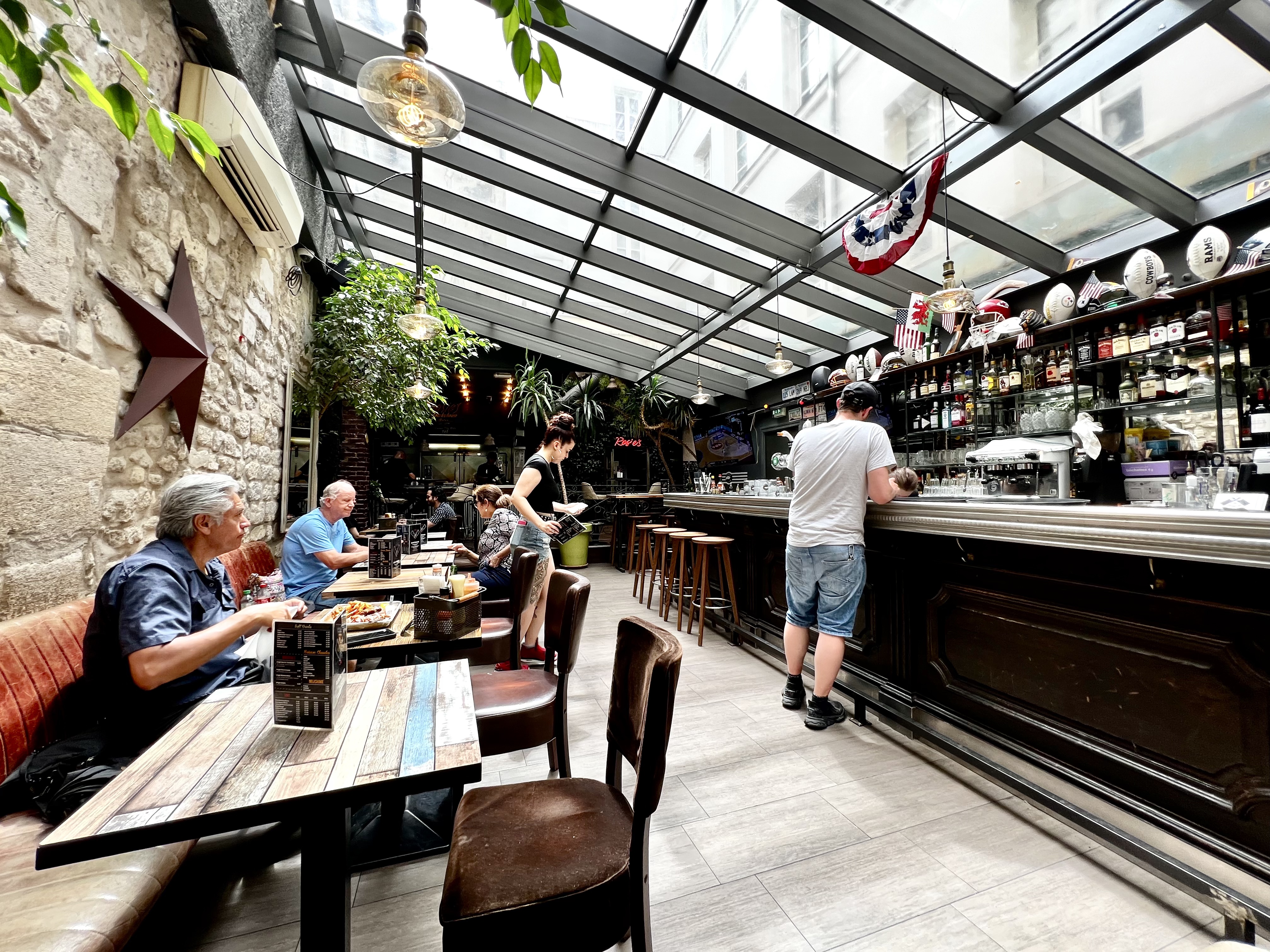 Café très convivial où on peut regarder des matchs de rugby ou du football américain. Possibilité de restauration rapide. Bon rapport qualité prix par rapport au quartier latin très touristique.