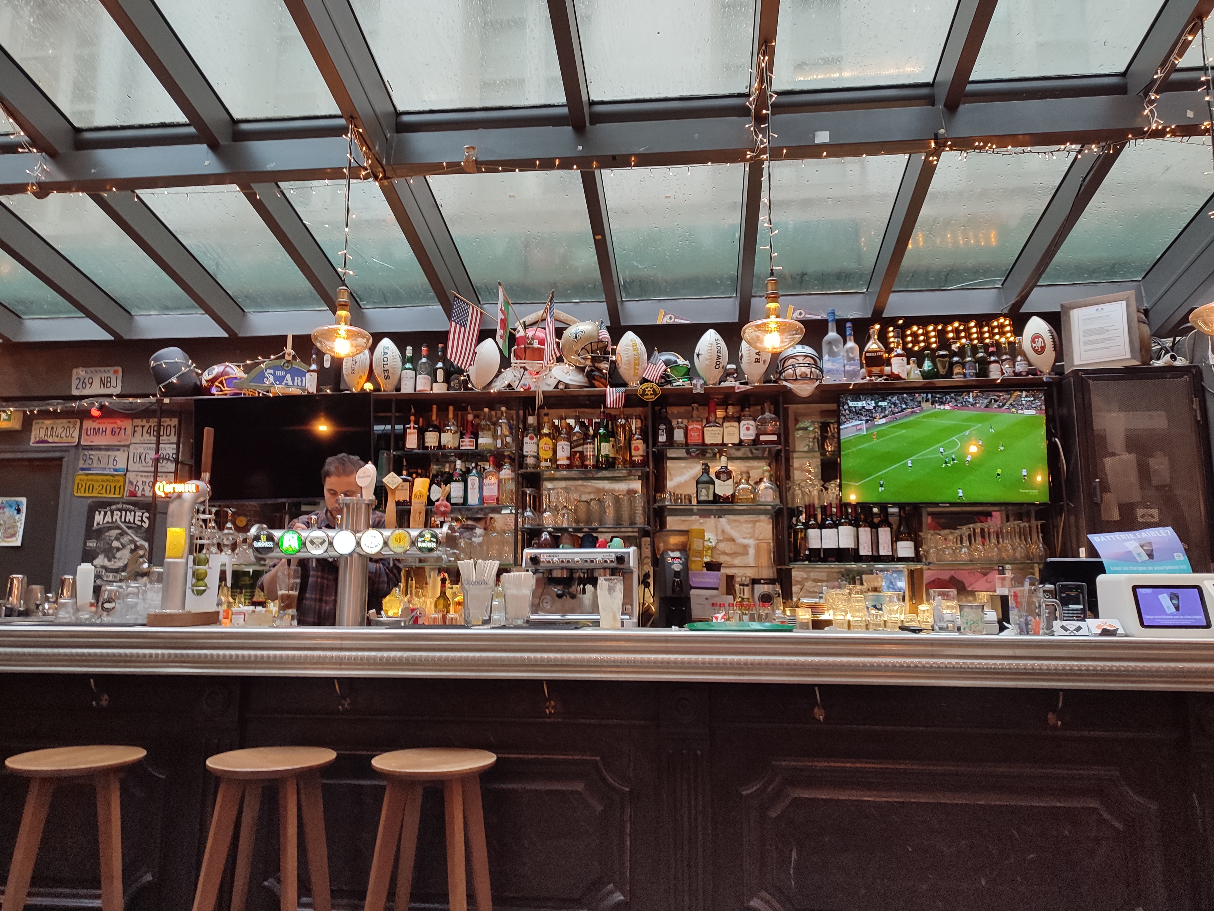 Bel endroit pour un repas court, sur le thème du bar sportif. La nourriture et le service sont bons, les boissons un peu trop chères par rapport à d'autres établissements à Paris