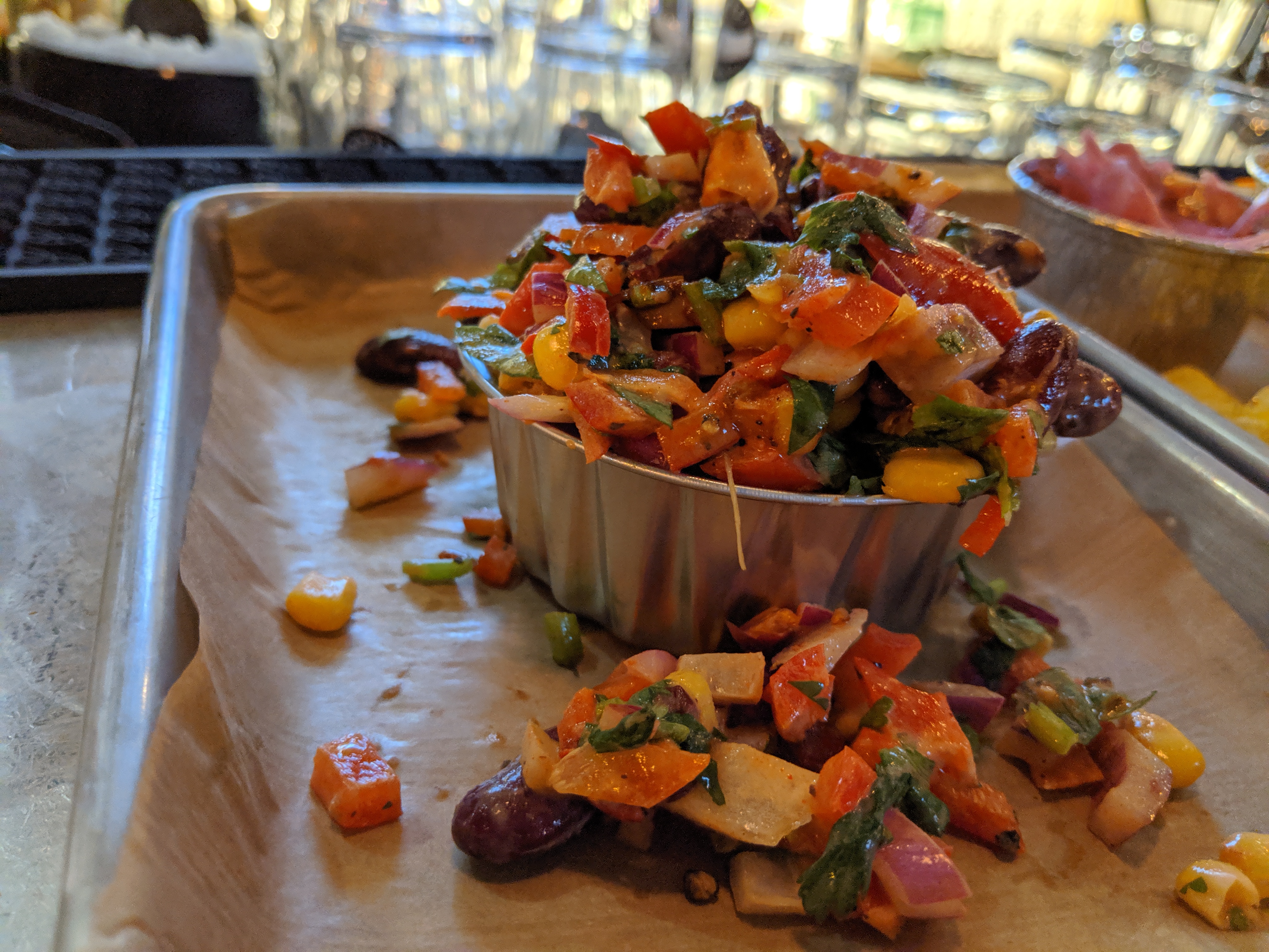 Étant donné que nous y sommes allés à 23h00 pour le dîner, c'était sympa. Mais le macaroni au fromage était féculent, les filets étaient étrangement rigides et la portion de porc effiloché était risible. J'ai payé un prix considérable pour de la nourriture correcte. Je recommanderais d'y aller pour prendre un verre et simplement prendre des amuse-gueules pour accompagner l'alcool, pas pour le dîner.