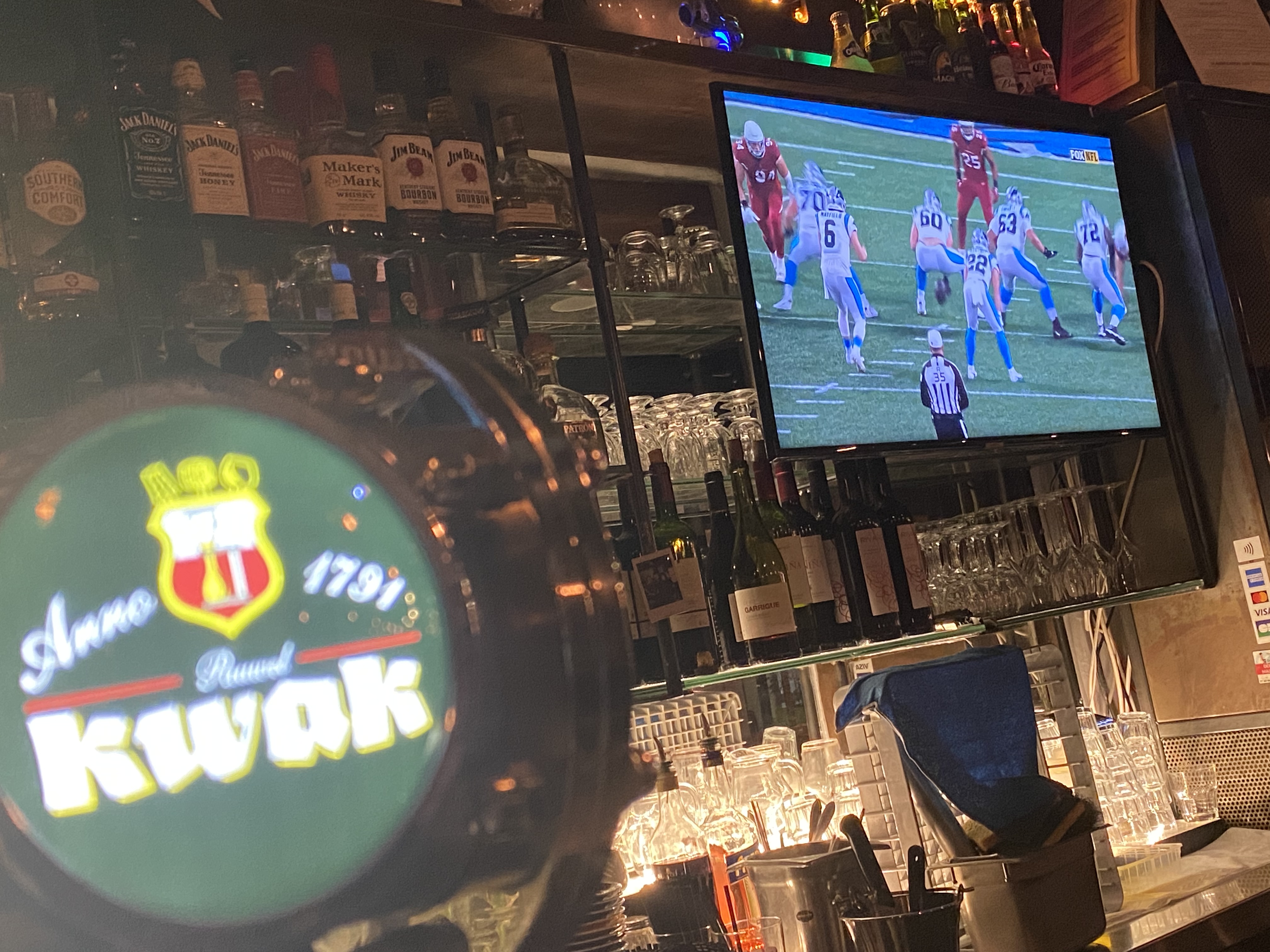 Si vous êtes à Paris et que vous souhaitez assister à un match de football américain, vous devez vous rendre chez Rosie. Nous avons essayé de rechercher sur Google les sites de matchs de football locaux et rien de pertinent n’est apparu. Nous venons de passer devant ce lieu. Ils ont des téléviseurs grand écran et ont même une zone rouge. Essayez-le, vous ne serez pas déçu, même si nous étions comme des Patriotes perdus ! Le barman, Suzanne, était génial (et en sait probablement plus sur le football que vous). . Apprécier!