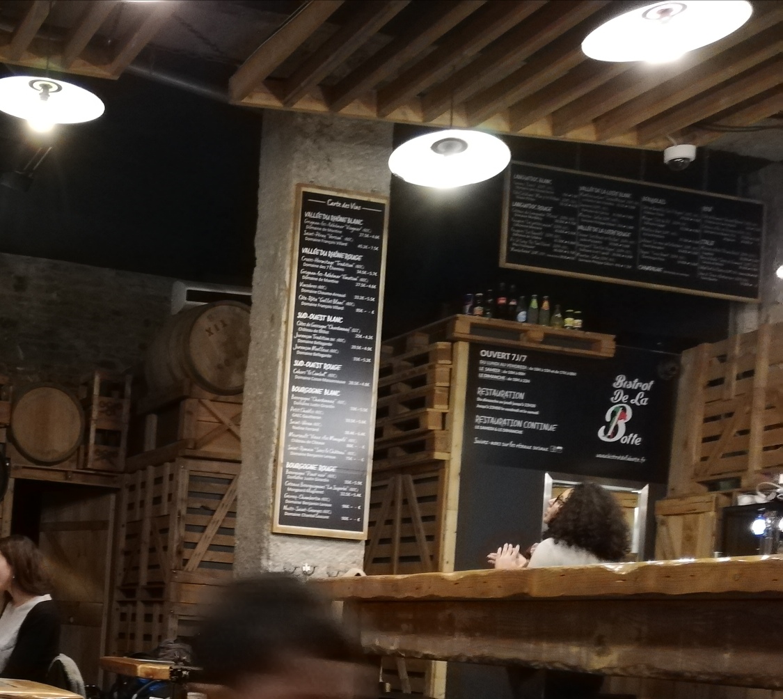 Un très bel établissement, bien fréquenté, bien décoré avec une carte bien pourvue. Le personnel est au petit soin, le verre n'est jamais vide. Les planches sont de qualité et étonnamment peu chère. Très bon moment, bravo la Botte