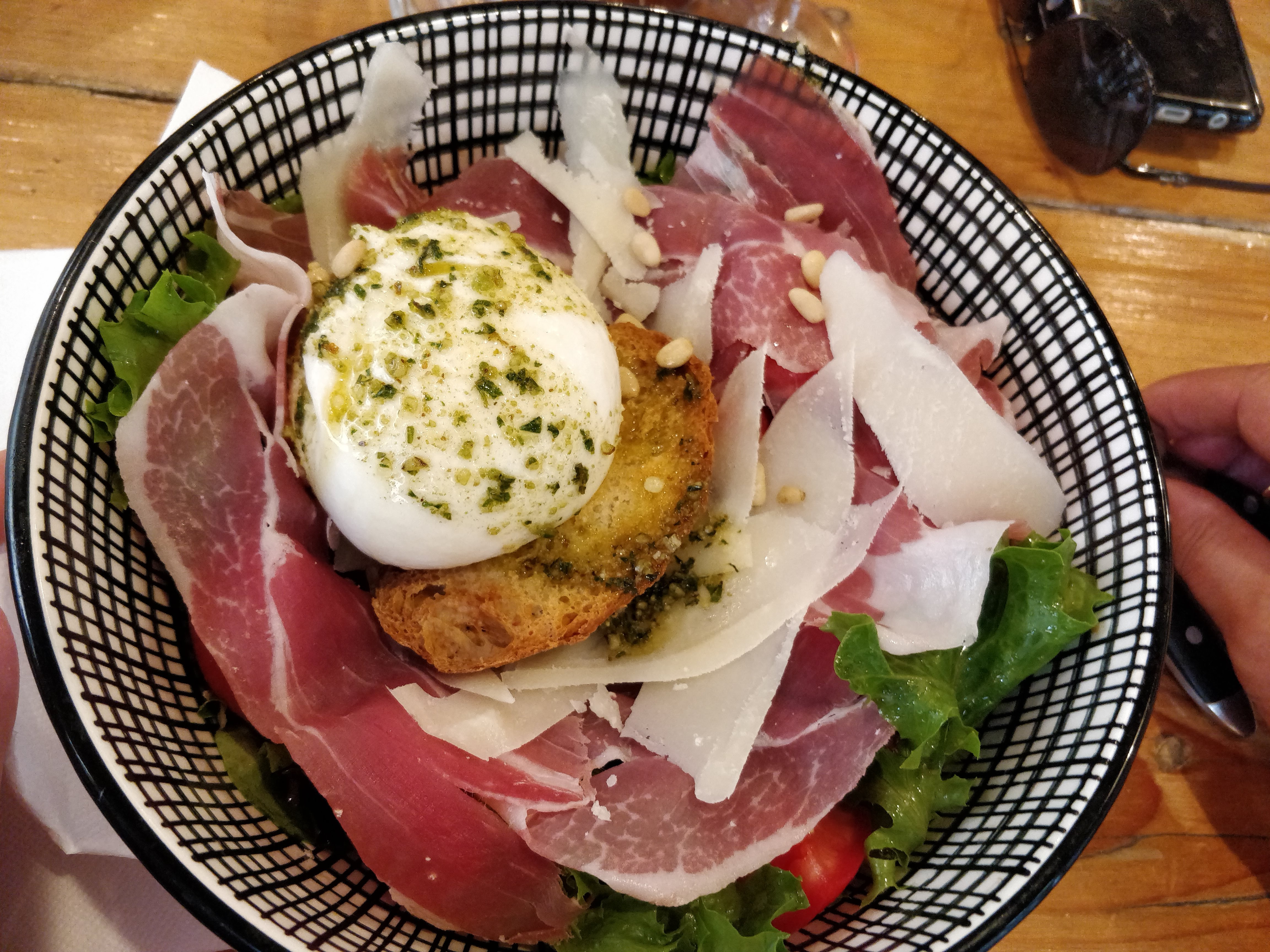 Cadre agréable en extérieur, l'intérieur est magnifique, le personnel réactif et sympathique. Le tartare de saumon est très moyen, la salade buratina est copieuse avec une charcuterie top, bien assaisonné, mais la mozza pas terrible.... Le prix de vin reste quand à lui abordable et il y a du choix. Bref bon concept mais la cuisine est moyenne ... dommage ... encore un effort et vous y êtes!! Courage.
