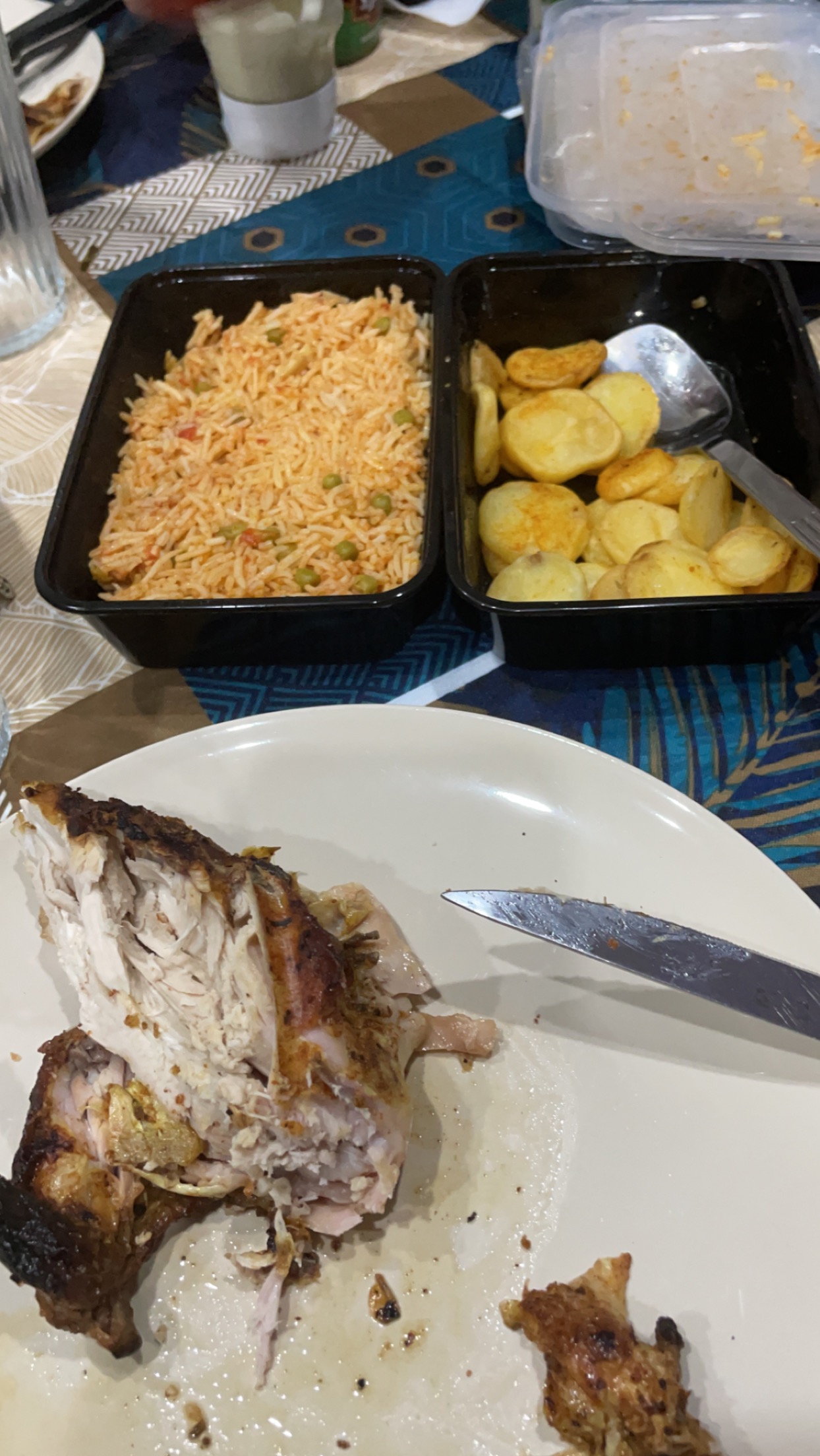 Très correct Simple, abordable et bon Poulet en entier pilon ailes demi cuisse et riz bien relevé patates très bon, un petit bémol sur les bananes plantain pas assez mûre revoir la cuisson voilà j'y retournerai avec plaisir 🍗🍗