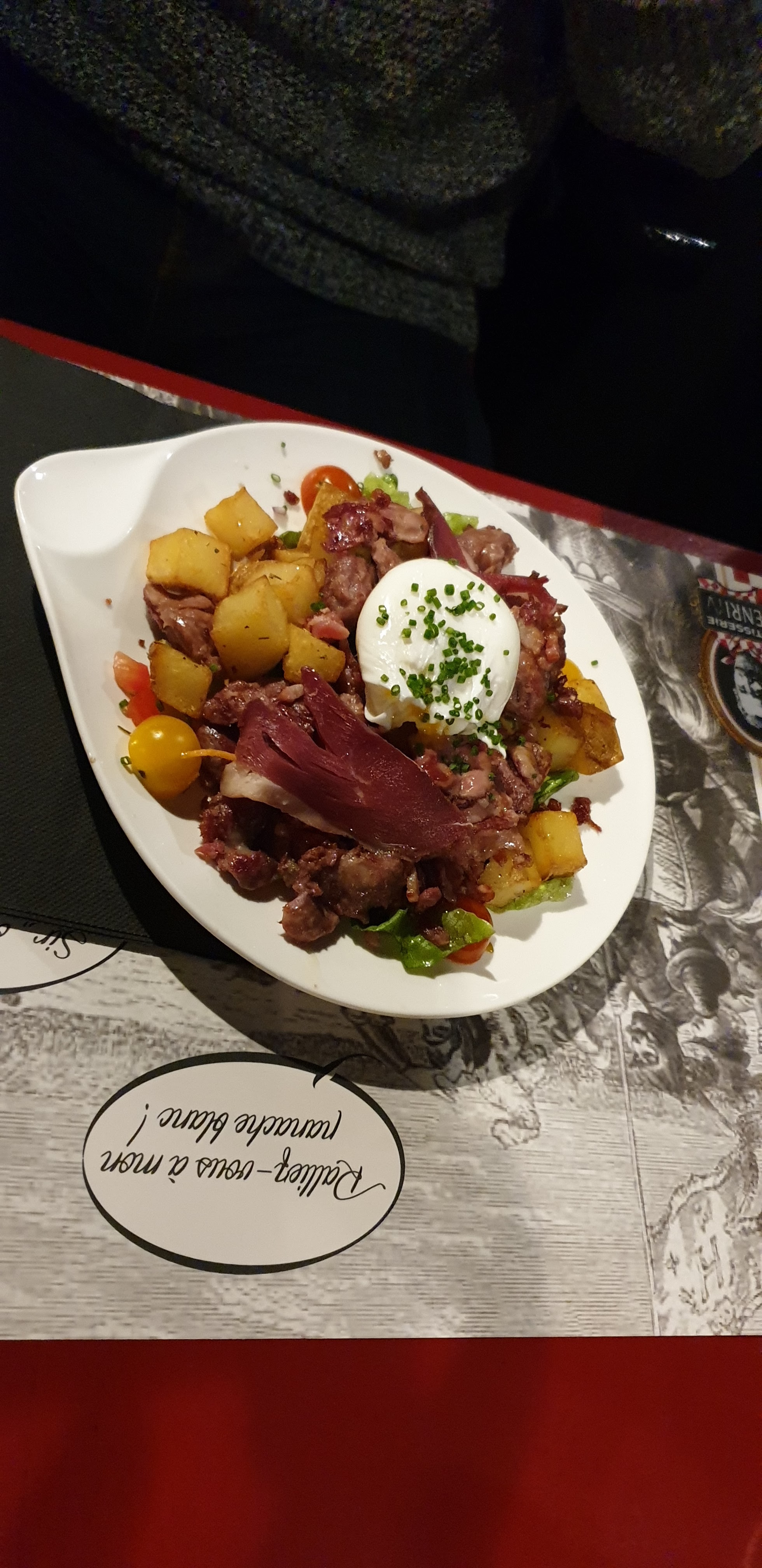 Carpaccio de bœuf très sec, jambon à l os et ses légumes (pas assaisonnés, très fades) servient froids, et frites très grasses. Plats retourné en cuisine et revenu tel quel !!! Très déçus, nous n y retournerons plus...!!!