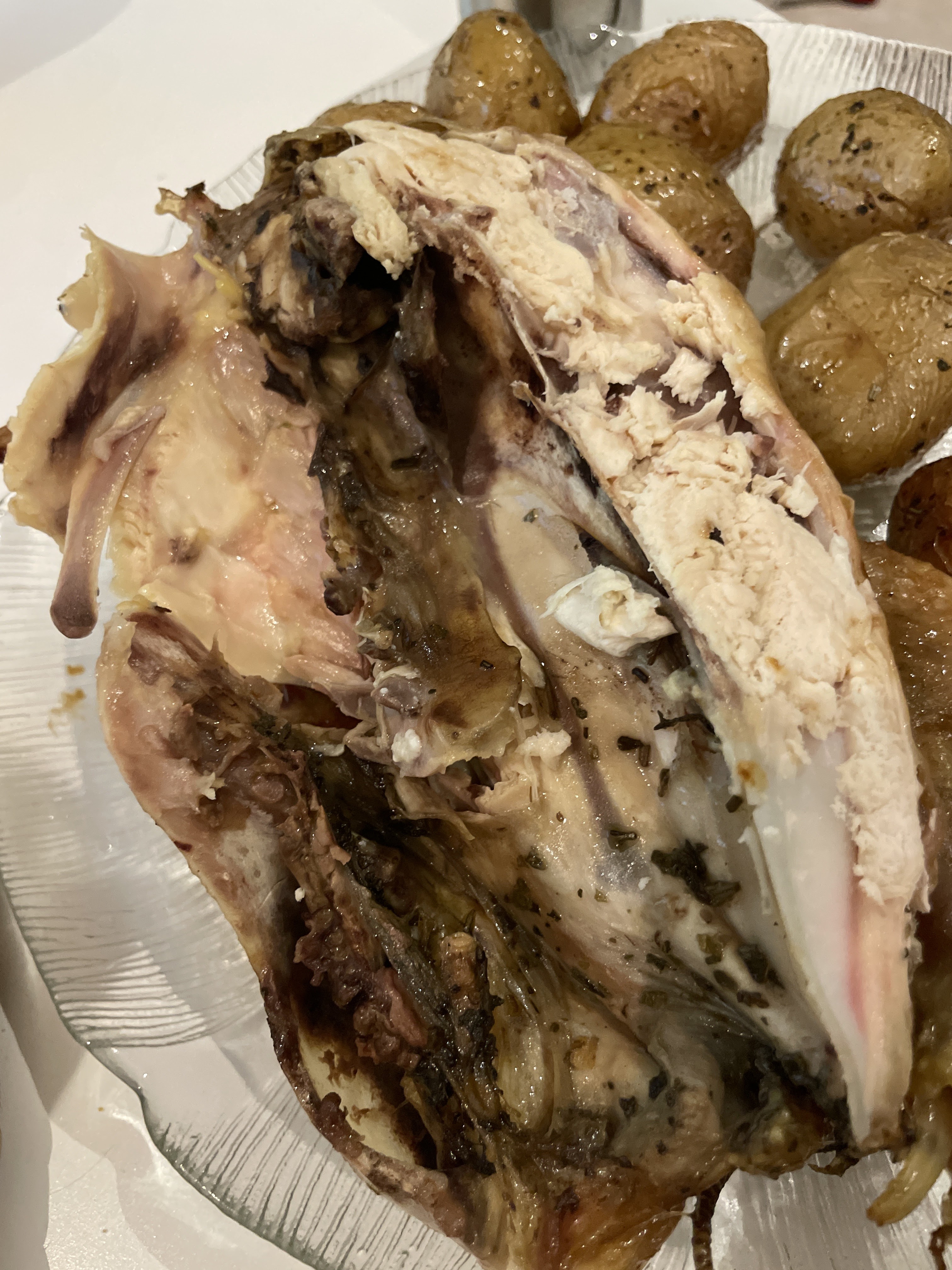 J ai pris deux petits jambonneaux des pommes de terre.les jambonneaux étaient très sec sans une goutte de jus les pommes de terre pas bonnes j ai payé 42 euros c est très cher et encore si ça avait été bon mais même pas c est du vol a fuir