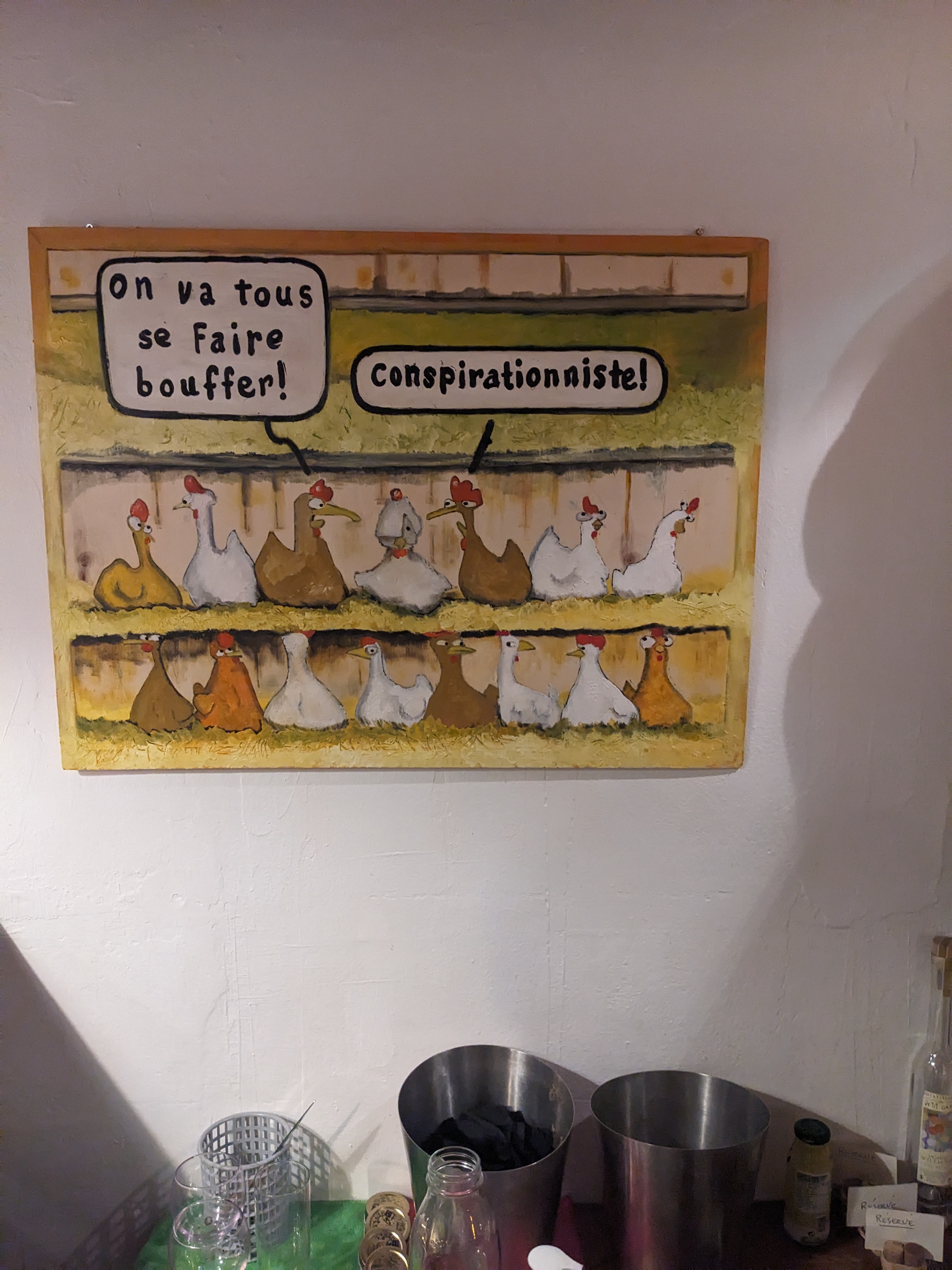 Une délicieuse soirée au calme, en terrasse, des plats maisons végétariens (et même végétaliens à la demande). L'équipe des poulets/poulettes est aux petits soins... et comme dans tous les bons repairs, de chouettes rencontres ! Merci à vous, on reviendra ! 🐓🐔🍀