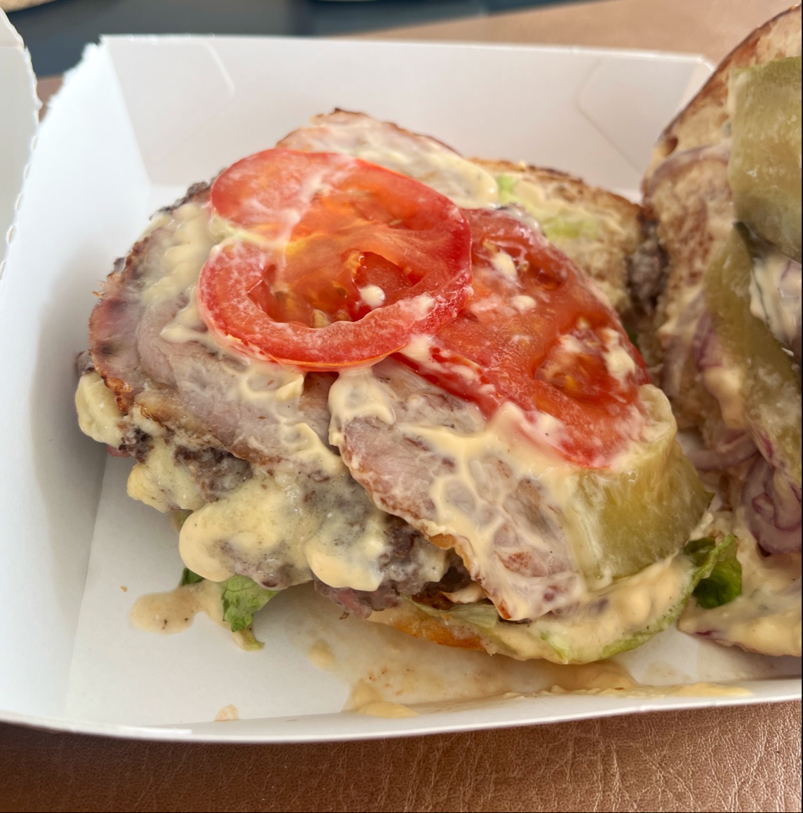 Je met 5 étoiles parce qu’on ne peux pas mettre plus 😂 Une équipe au top avec des burgers de ouf !!! Je suis un gros mangeur et j’ai presque eu du mal à finir. Super gourmands, super garnis avec des produits de qualité, je recommande ++ !!! Foncez, vous serez pas déçus !