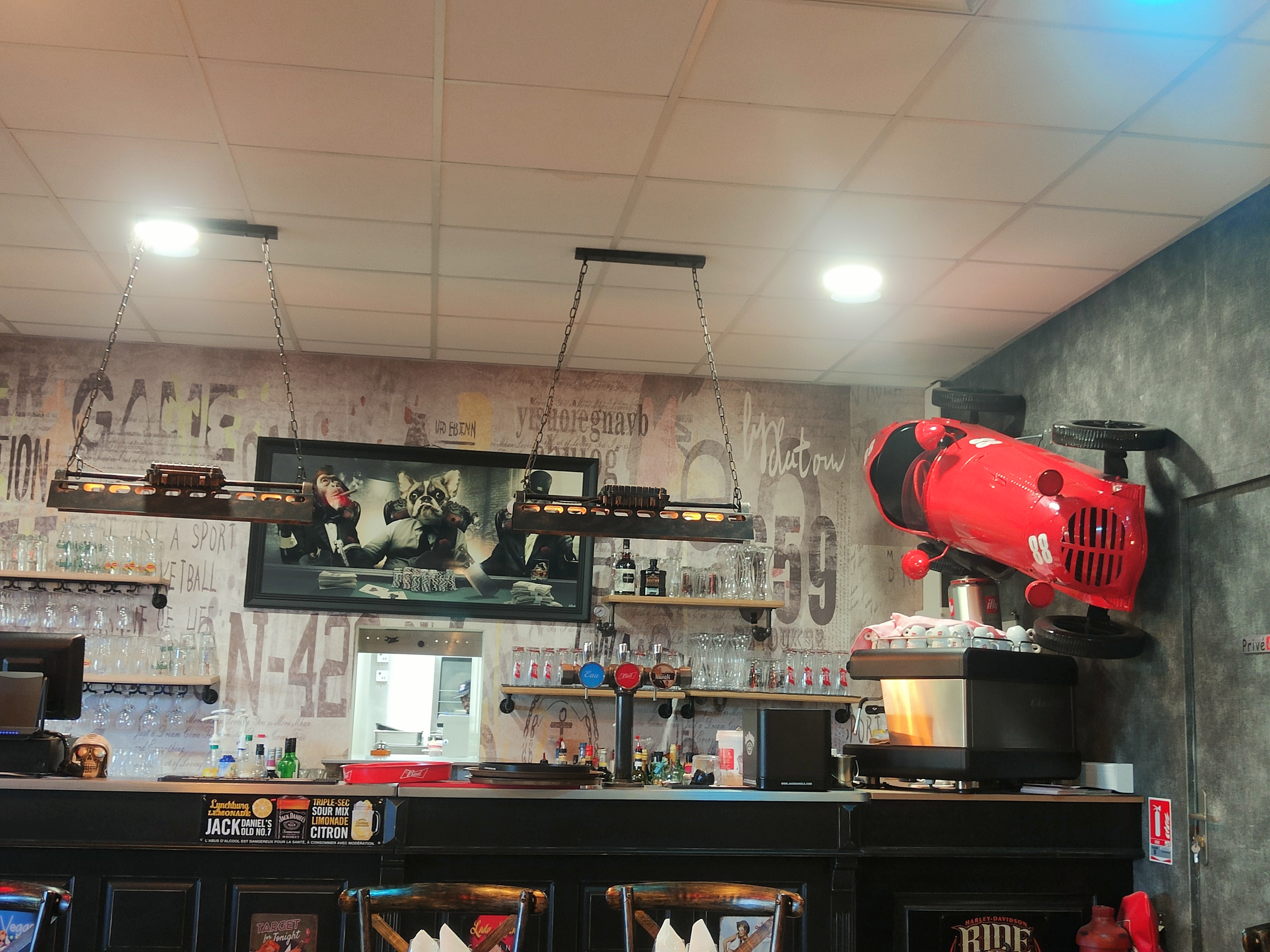 restaurant typique à l'américaine, bien à l'image du patron qui accueil à bras ouvert, avec un coté Fast Food ou l'on se retrouve aux USA, et la partie diners toujours aux style USA mais avec un coté industriel qui n'est pas du tout la pour déplaire. Les prix affichés peuvent faire peur à certains clients, mais quand vous allez voir la qualité et la quantité dans l'assiette vous n'allez surtout pas regretter (il ne faut pas oublier que c'est de la viandes Angus donc la 3e viande la plus cher qu'il existe sur le marché). je suis de base un très gros mangeur et la sur ce coup-ci je me suis fait avoir. je recommande pour les passionnés des motos, voitures américaine et de la bonne bouffe, vous êtes dans le bon endroit. Des soirées animées on également lieux donc à découvrir.