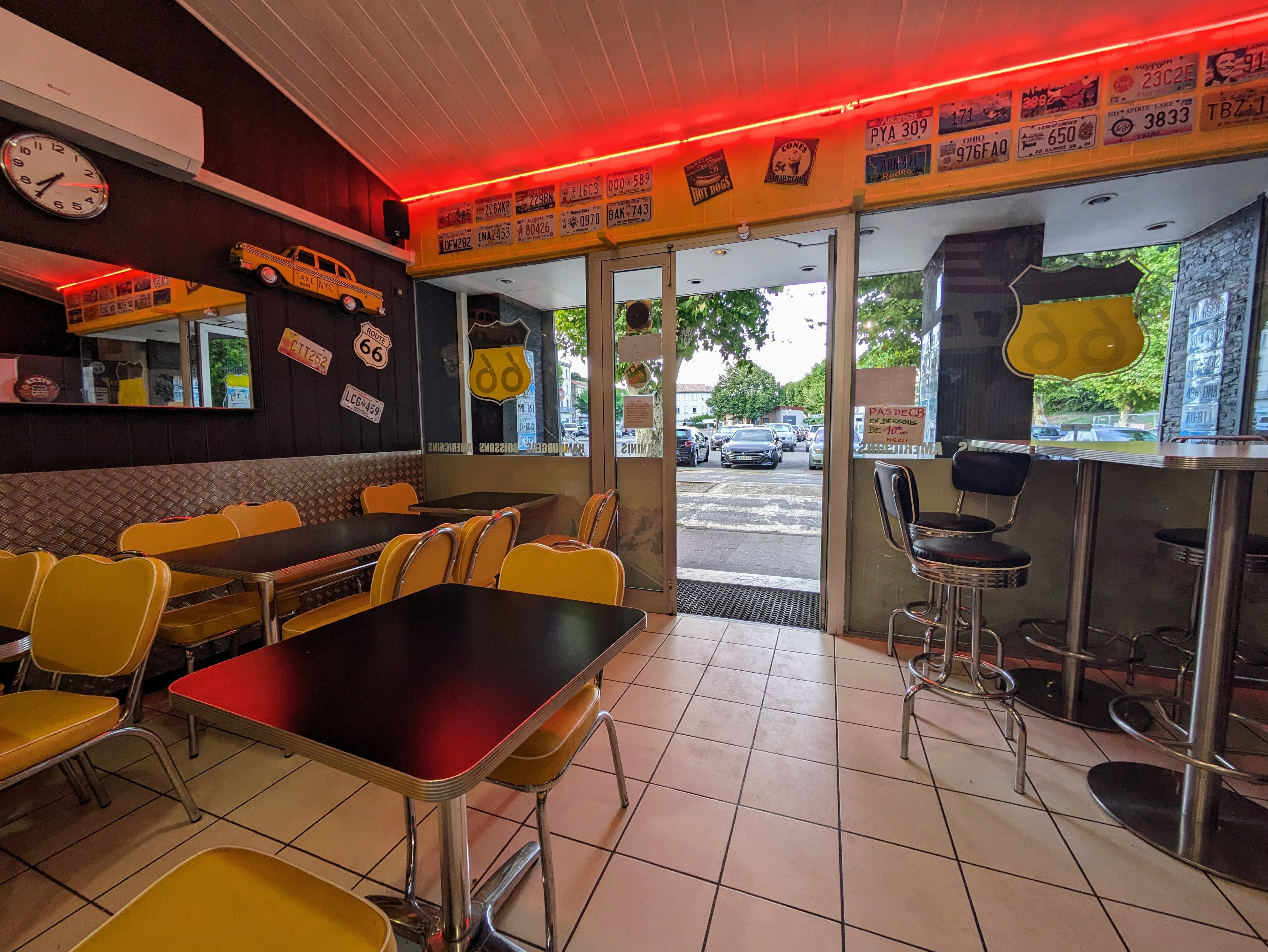 Un restaurant normal où il n'est pas permis de manger. À emporter uniquement. Burgers déconseillés. Plus de petits pains que de garnitures. Les galettes ont tendance à sortir du congélateur. La pizza est également déconseillée. Cela n'a rien à voir avec la Route 66.