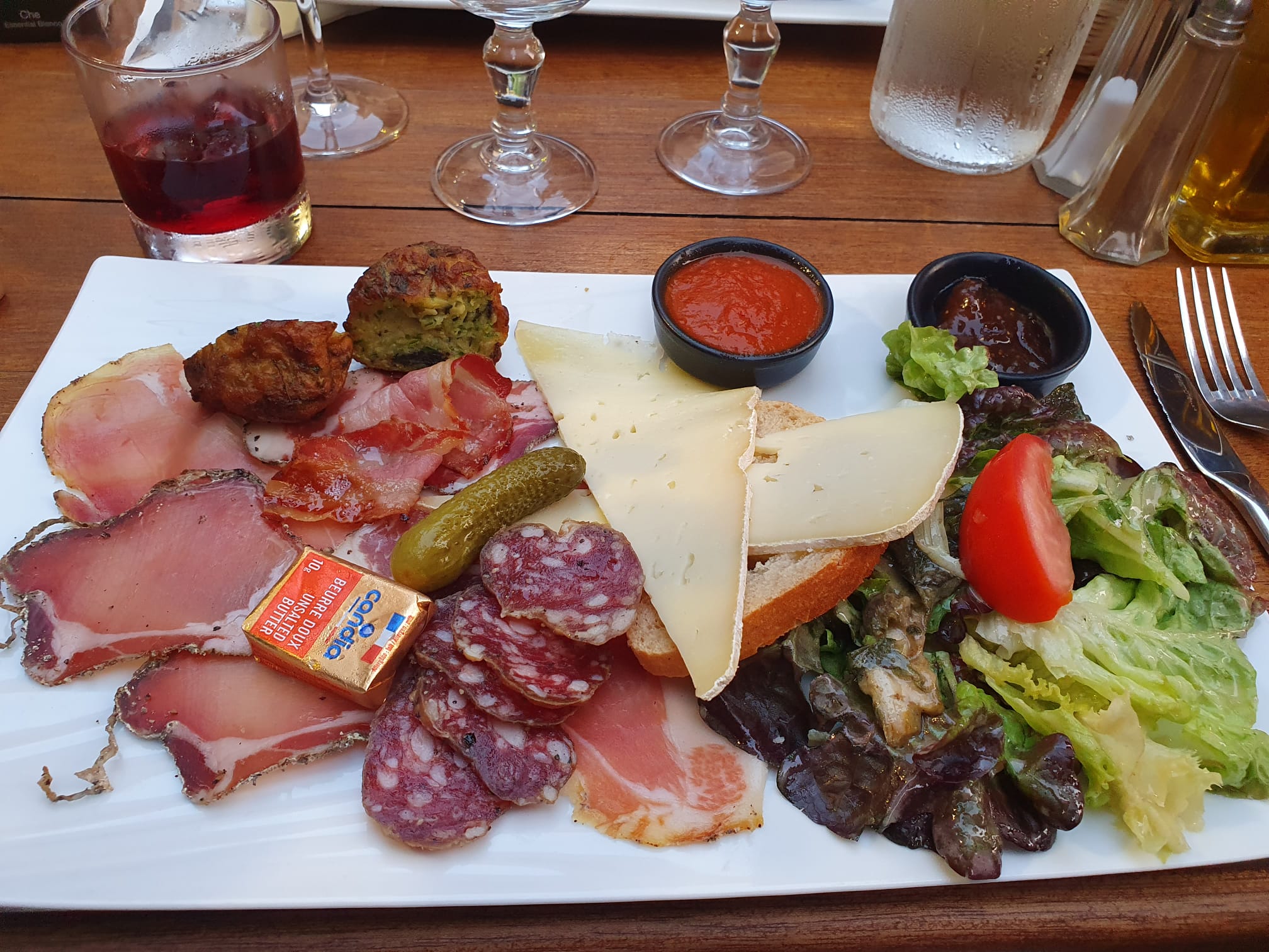 Assiettes de charcuterie délicieuses et personnel très sympa, tout cela ajouter au charme des rues de la vieille ville, on fait de notre déjeuner un moment fort agréable 😊
