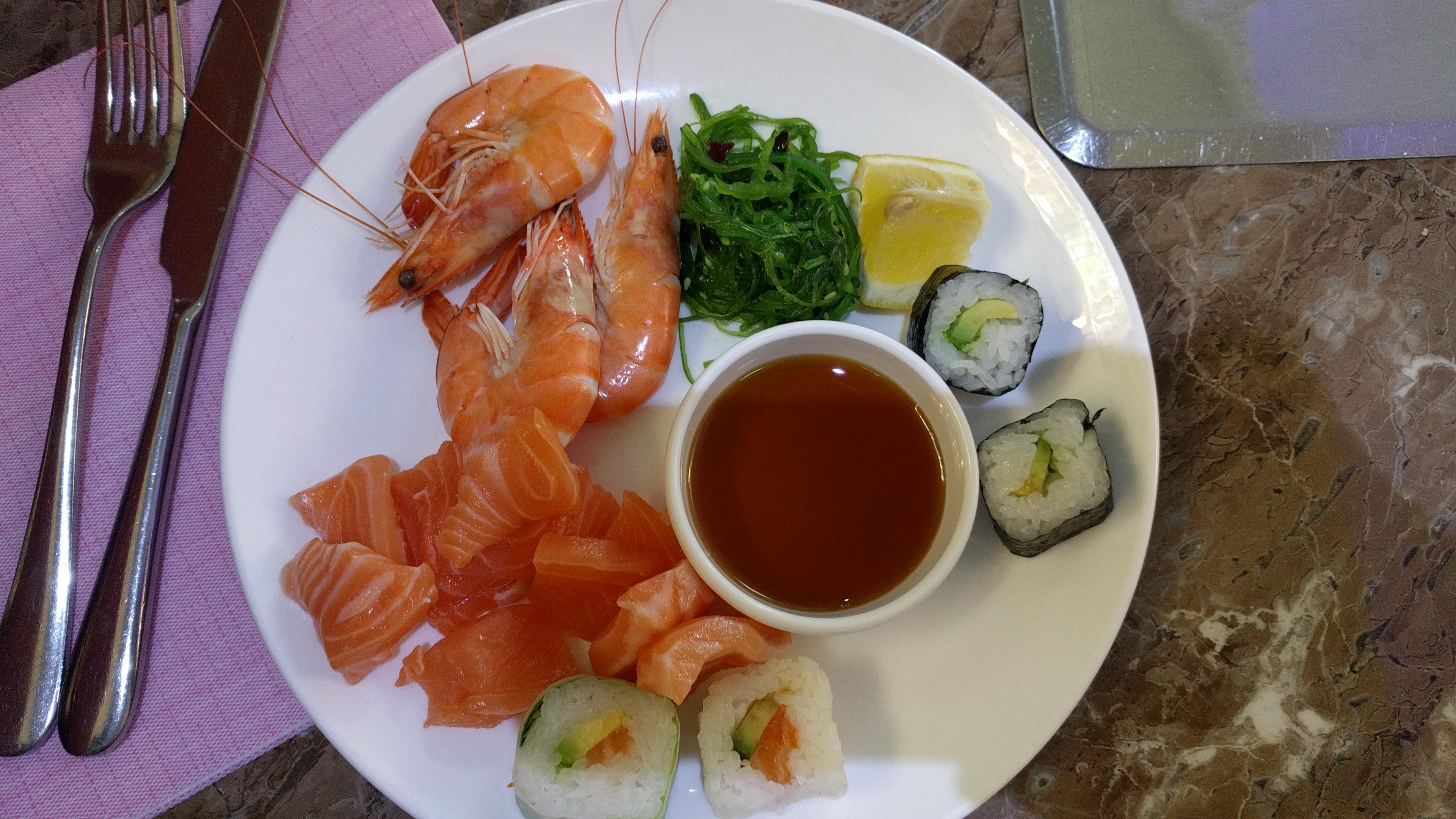Bonjour. Pas assez de choix pour le poisson, il y a juste du saumon (et du panga que je ne mange pas), il est également dommage que les sauces dans les plats ne soient pas assez variées. Il est également vraiment dommage que les places handicapés ne soient pas respectées, j'ai été obligée de me garer assez loin