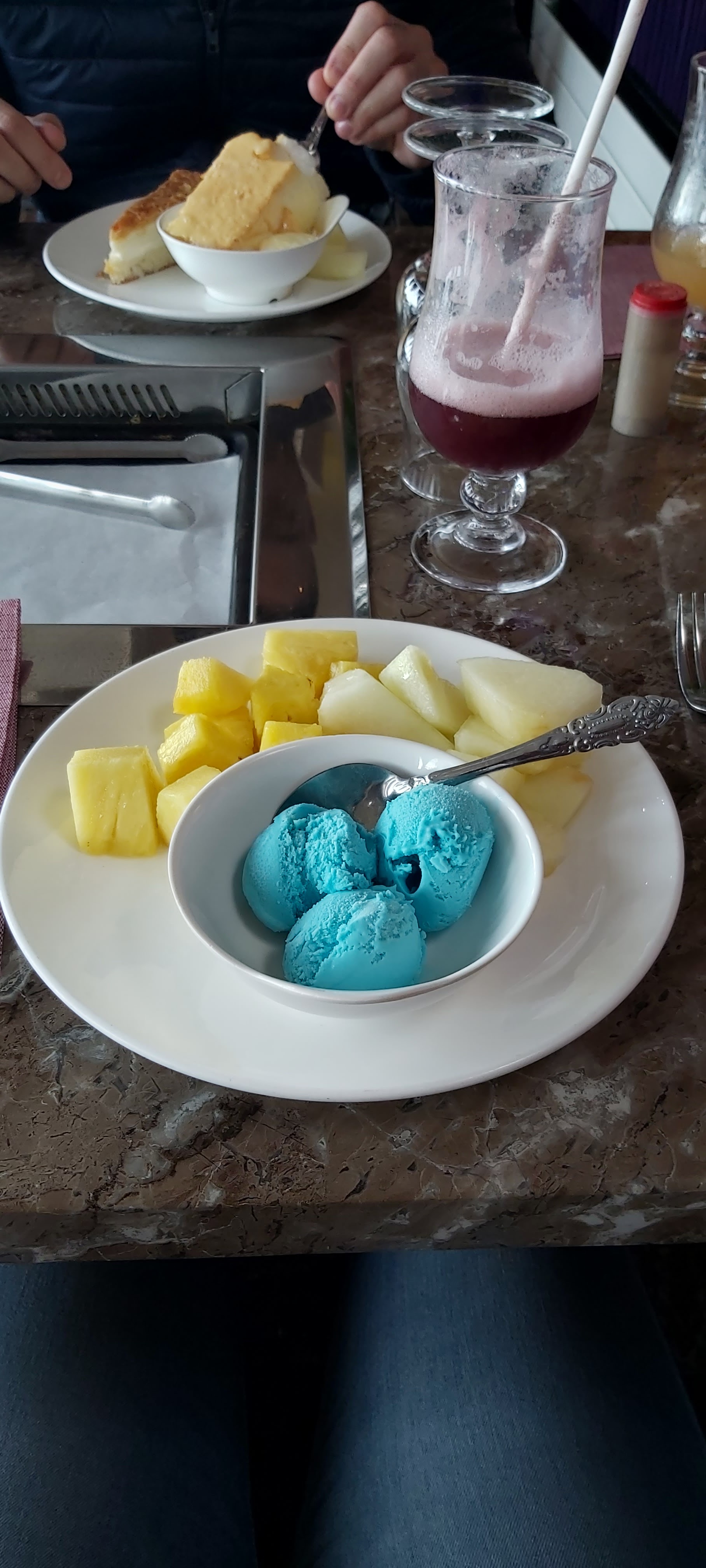 Restaurant jolie personnelle très sympas. Pas les 5 étoiles car trop de plat typique FR a mon goût, mais le buffet est très sympas. Il y a aussi a chaque table de quoi faire chauffer des trucs ce qui est très cool aussi :)