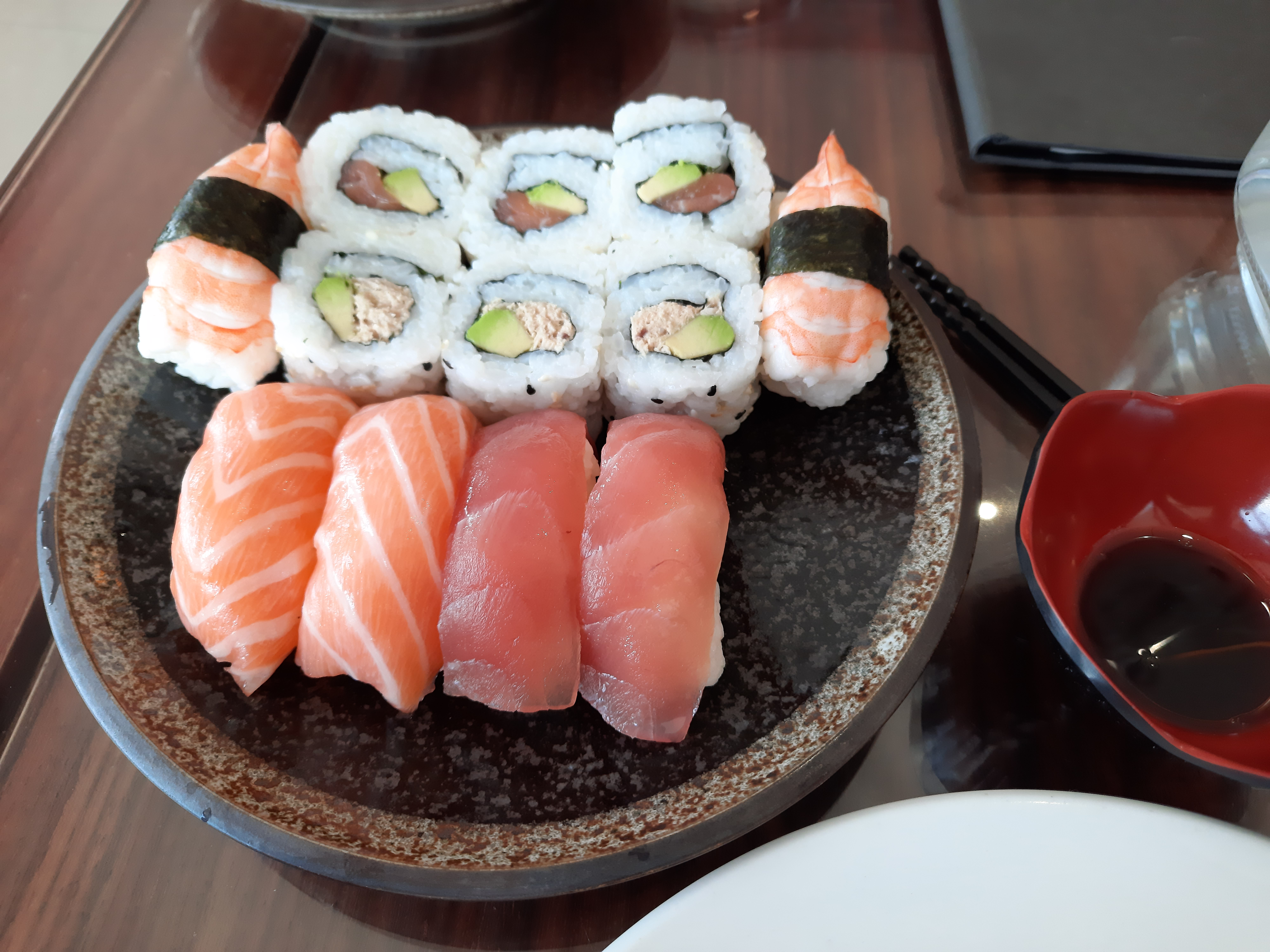 Les poissons sont de qualité, les makis mériteraient d'être plus petit, un peu plus de choix, le service est rapide. Le choix par carte est sympathique et change des simples buffet. A conseiller. En cas d'affluence les gens sont un peu serrés.