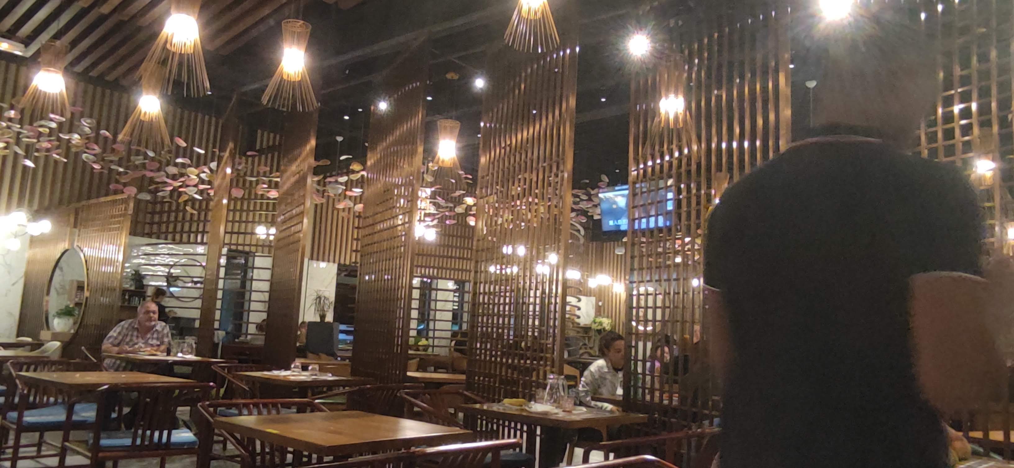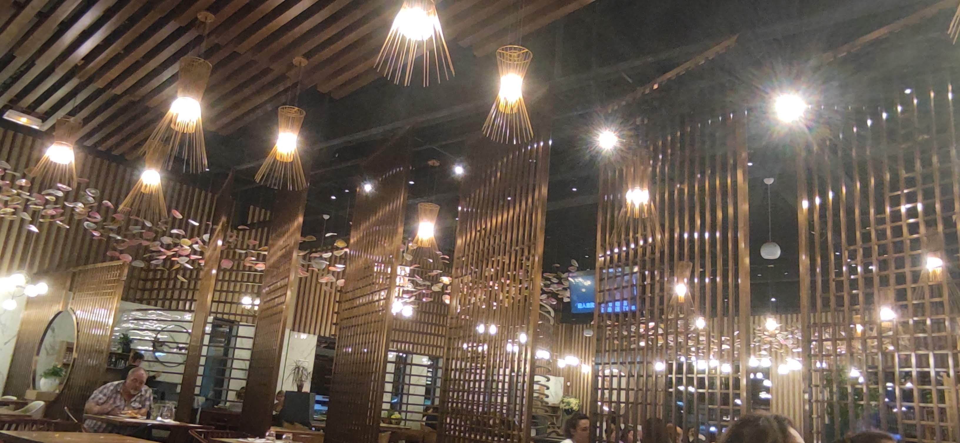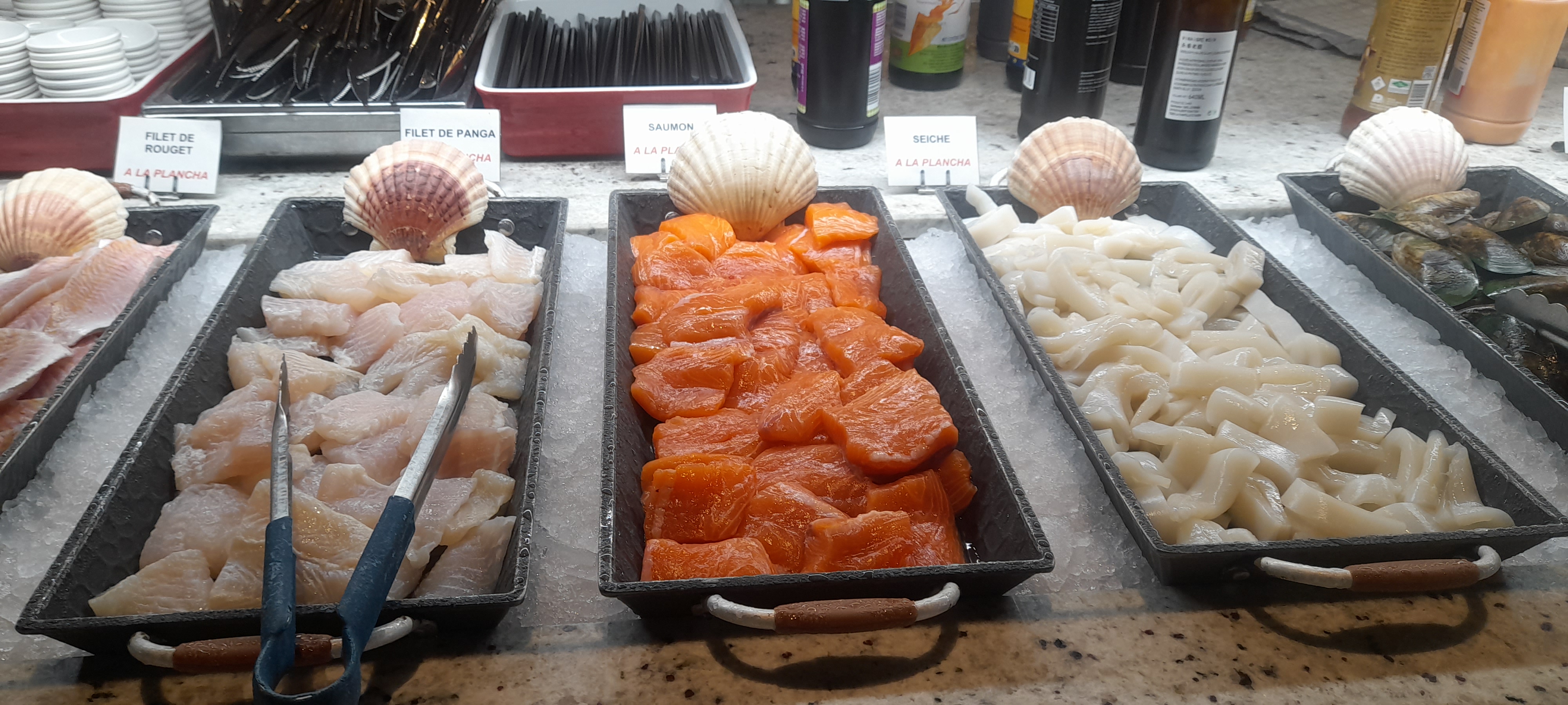Un grand restaurant avec une belle décoration qui sort de l'ordinaire un vaste choix de produits frais .malgré manque du personnels le service est assuré. Il y a que du poisson pour ceux qui mangent halal. le porc est dans les entrées voilà Après une année je redonne mon avis extraordinaire fraîcheur large choix tout est fait maison