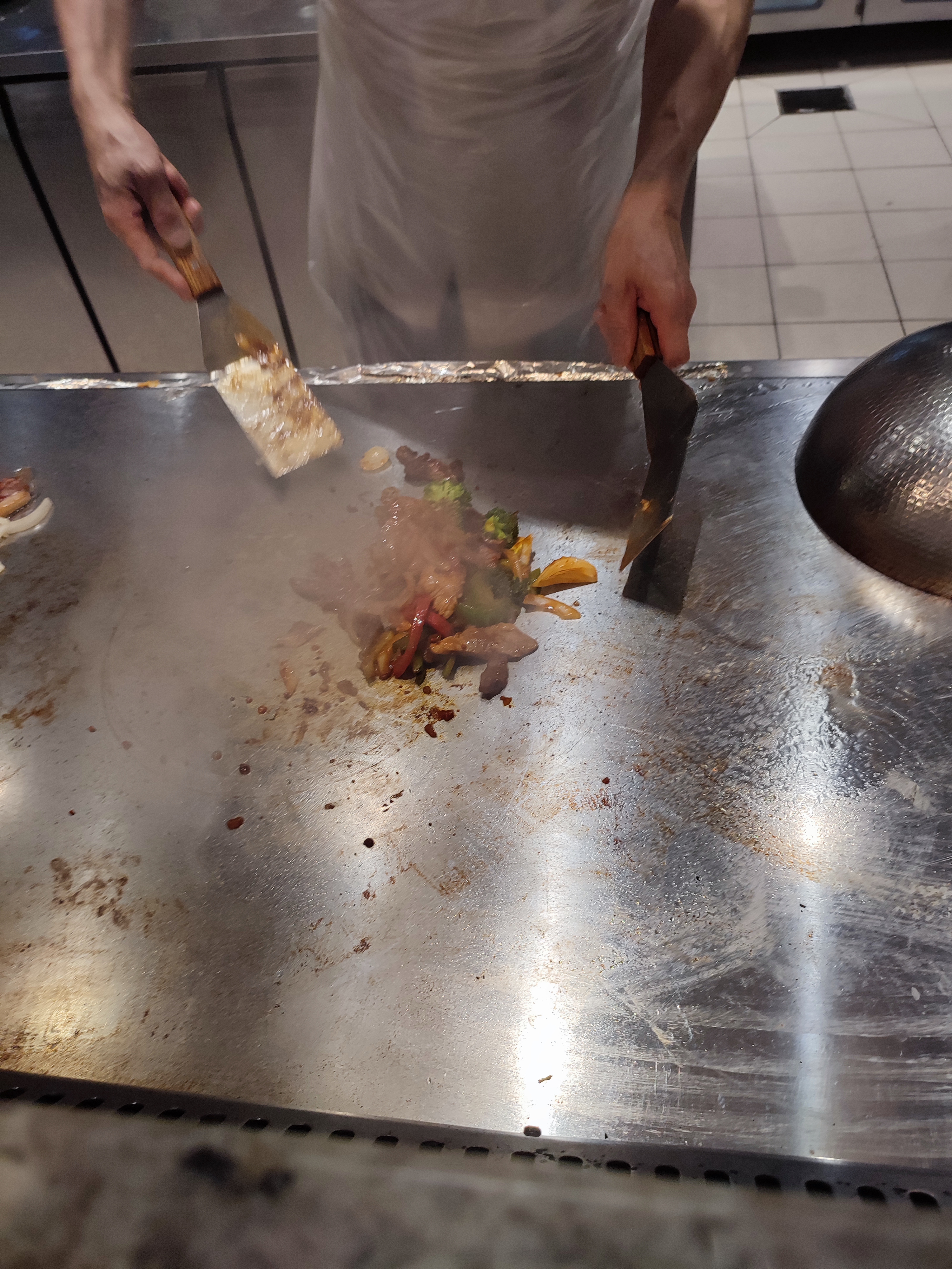 Pour la 1 er fois j'ai bien mangé notre serveur très agréable le personnel asiatique au niveau du wok et du barbecue n'est pas très agréable