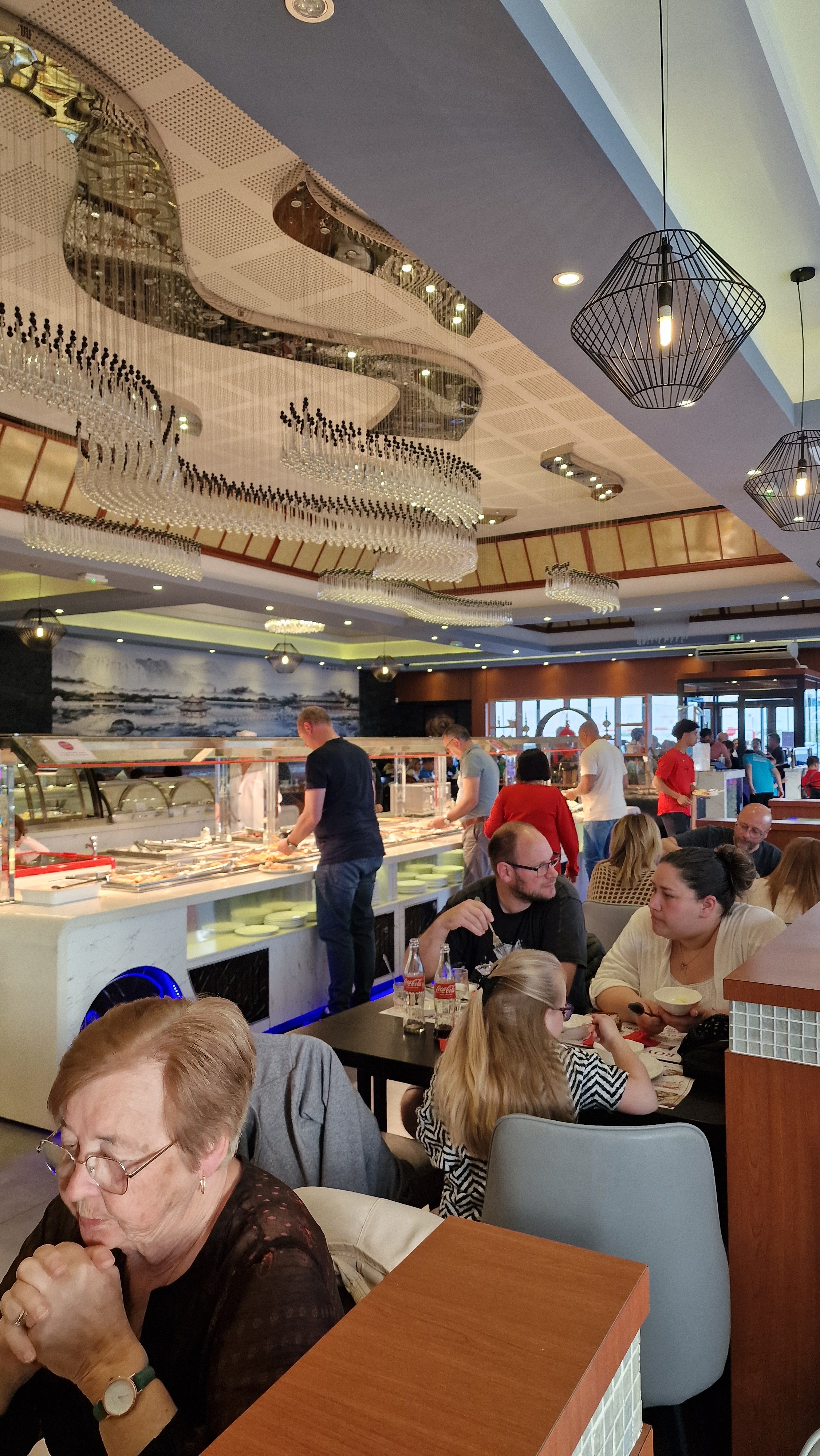 Restaurant très convivial avec énormément de choix et le réassort est assuré tout le temps donc pas d'attente. Un peu bruyant mais avec autant de capacité c'est normal. Le seul bémol qui me chagrine est qu'il n'y a plus de rouleau de printemps.