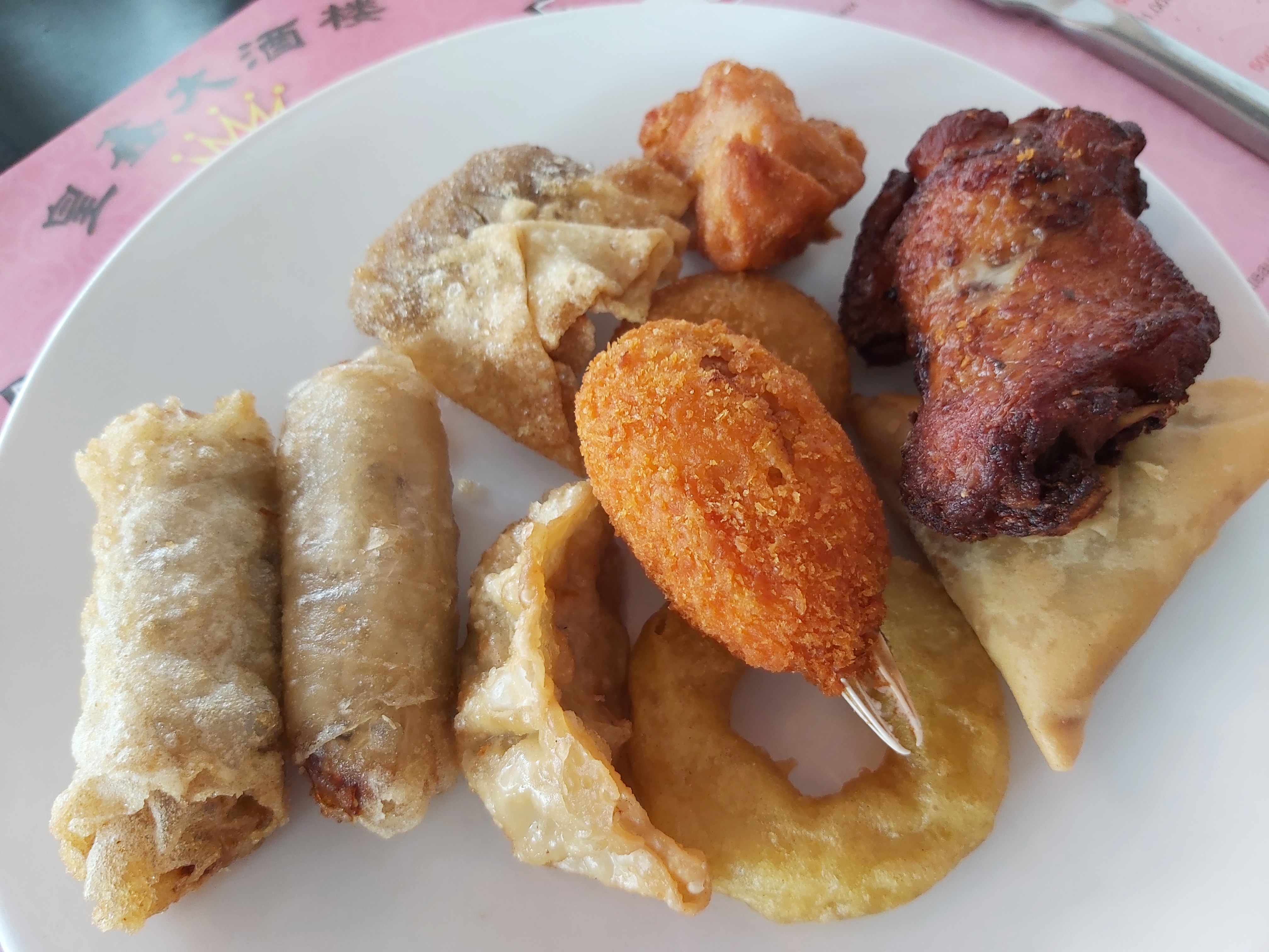 Buffet à volonté traditionnel, peu de choix d'où un prix moins élevé qu'ailleurs, cependant il y a fontaine à chocolat et nombreux desserts, quelques assiettes pour illustrer le buffet en photo: