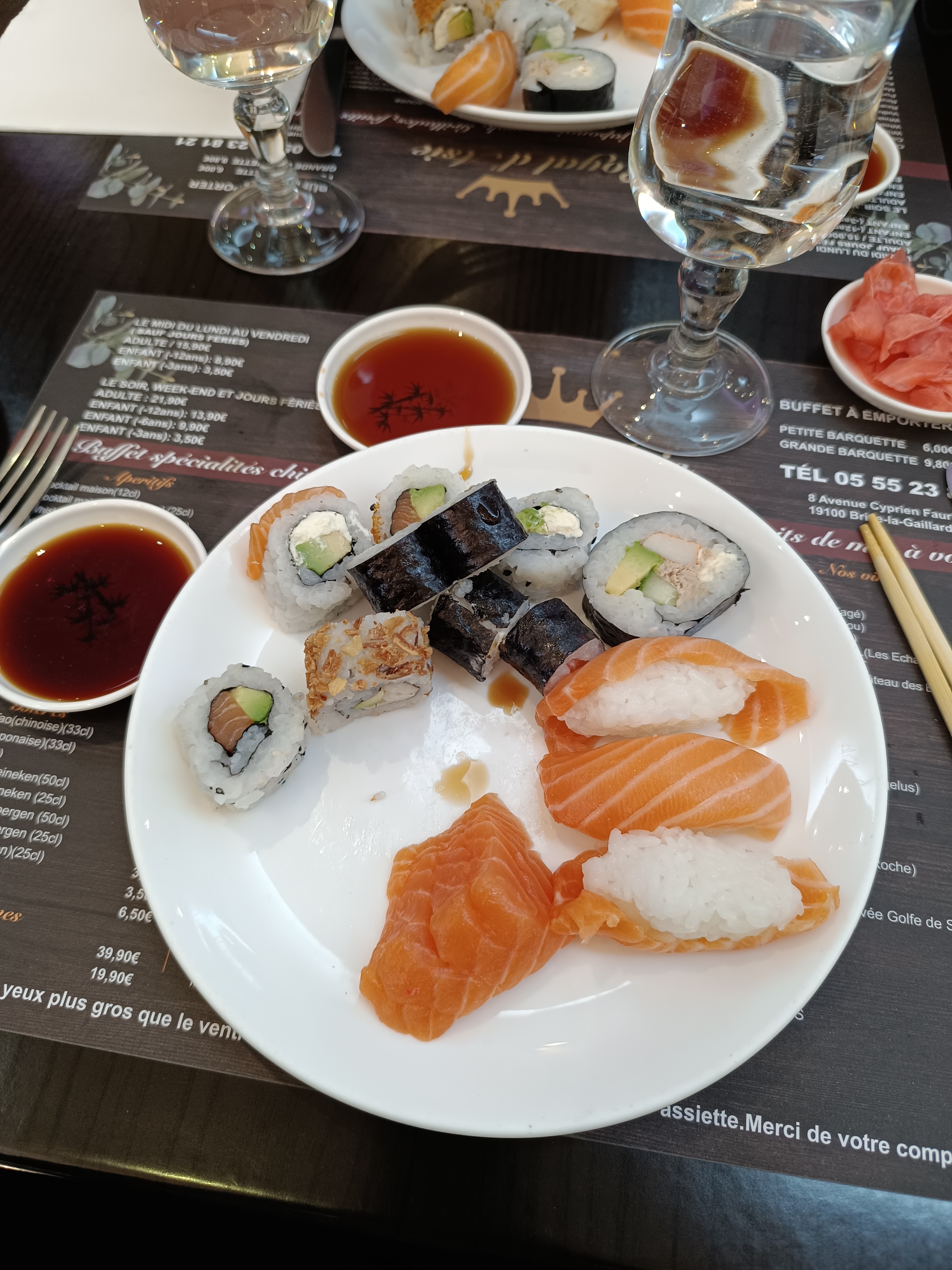 Pour avoir testé les autres restaurants chinois Pour moi la meilleure adresse de Brive ( en Buffet a volonté bien sûr) très large choix de sushi et Maki et très frais la salle et immense et quelques plat sont vraiment bon ( les nouilles). Quelques points négatifs tout de même pas assez de choix de dessert et le personnel et un peut froid à première vu.mais ses tout très bon rapport qualité prix je conseille