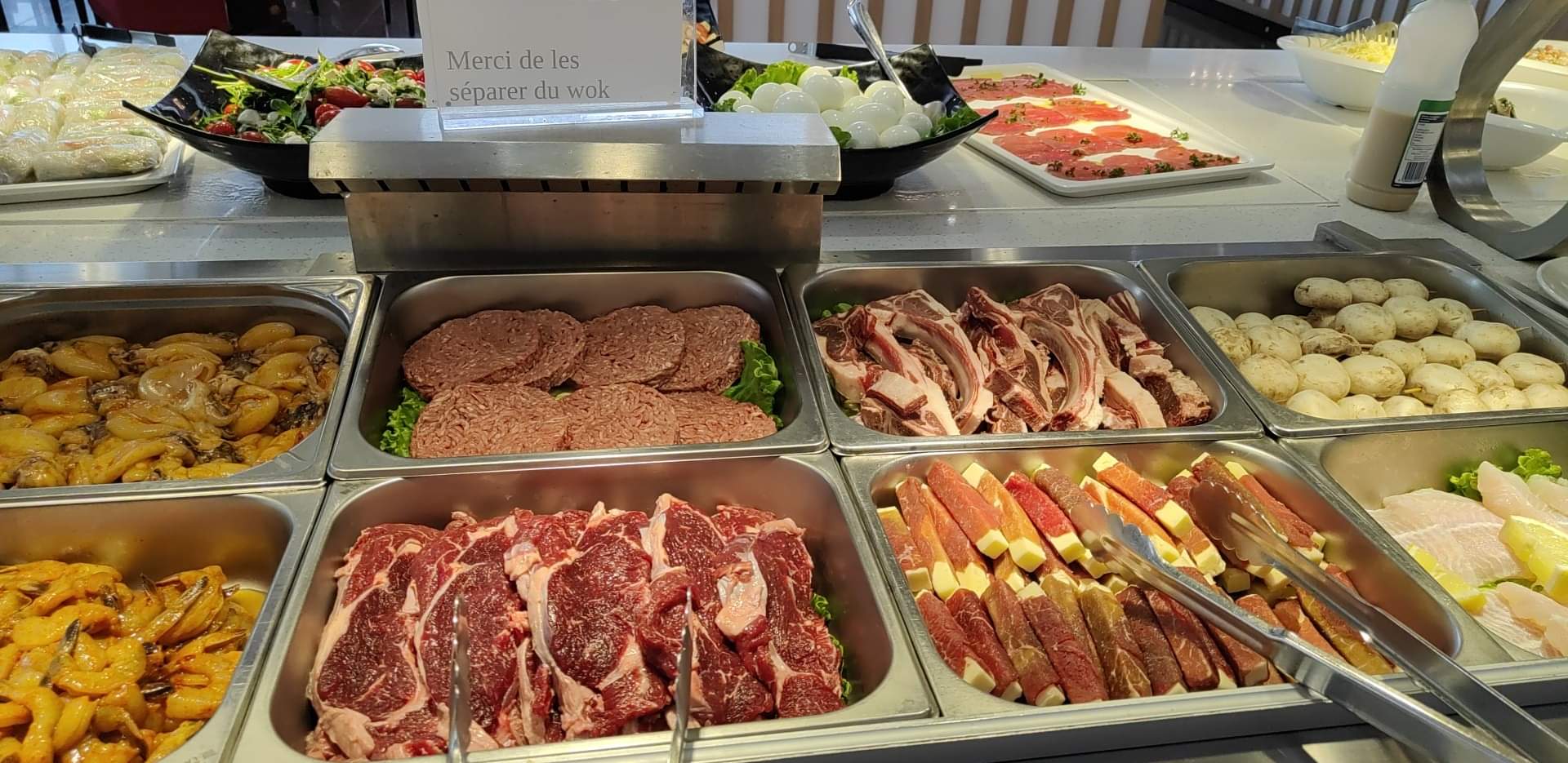 Beau choix de plats, mon passage au wok a été un peu décevant le cuisto à ete radin sur la sauce! Mais le reste était bon.