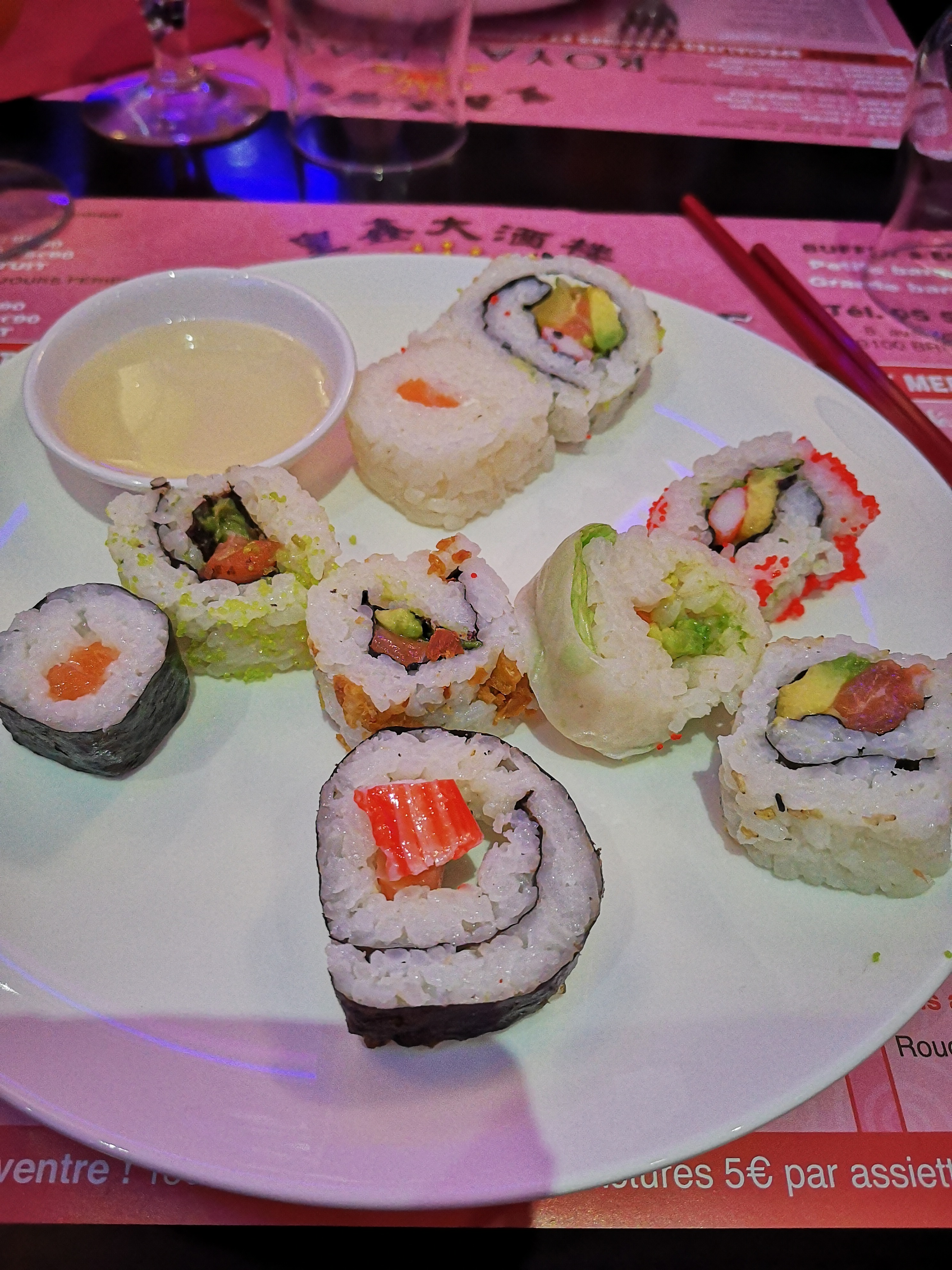Énorme choix ! Propre et très bon pour du volonté ! Beaucoup de choix sushis, nems, wok, plancha, énormément de desserts, gâteaux, glace, fruits... bref Super ! Super salle de jeux pour les enfants, bref je n'irai nulle part ailleurs !