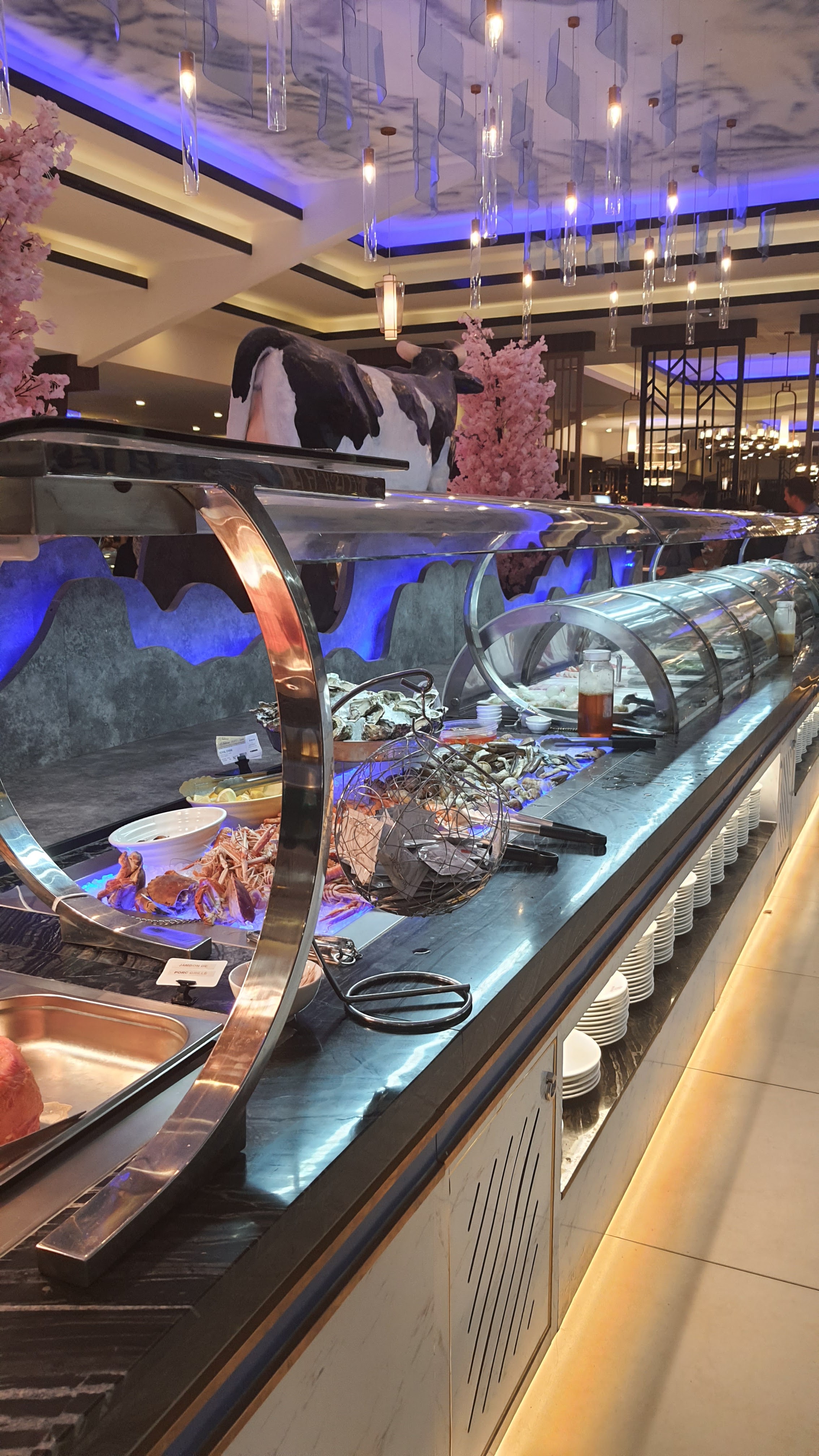 Meilleure expérience que la 1 ère fois ... Où nous avions dîné un samedi soir après 20h, nous avions eu une attente de près de 3/4 d heure dehors dans le froid..de plus nous n avions pu manger les plats qui nous intéressaient car pratiquement vides, et surtout difficile d accès au buffet...Mais ce vendredi nous y sommes retournées à 19h, à l ouverture, impeccable rentrées de suite pas d attente conduites direct à notre table ..prise de commande boissons dans la foulée servies à table par petit robot...accès au buffet bien accessible, pas de monde on pouvait tourner autour . franchement j' ai bcp apprécié...le personnel plus souriant et plus adapté à la langue française et c'est plus agréable..Nous avons passé une agréable soirée....bcp de choix dans tous les domaines de produits....Nous reviendrons...Merci à toute votre équipe ...