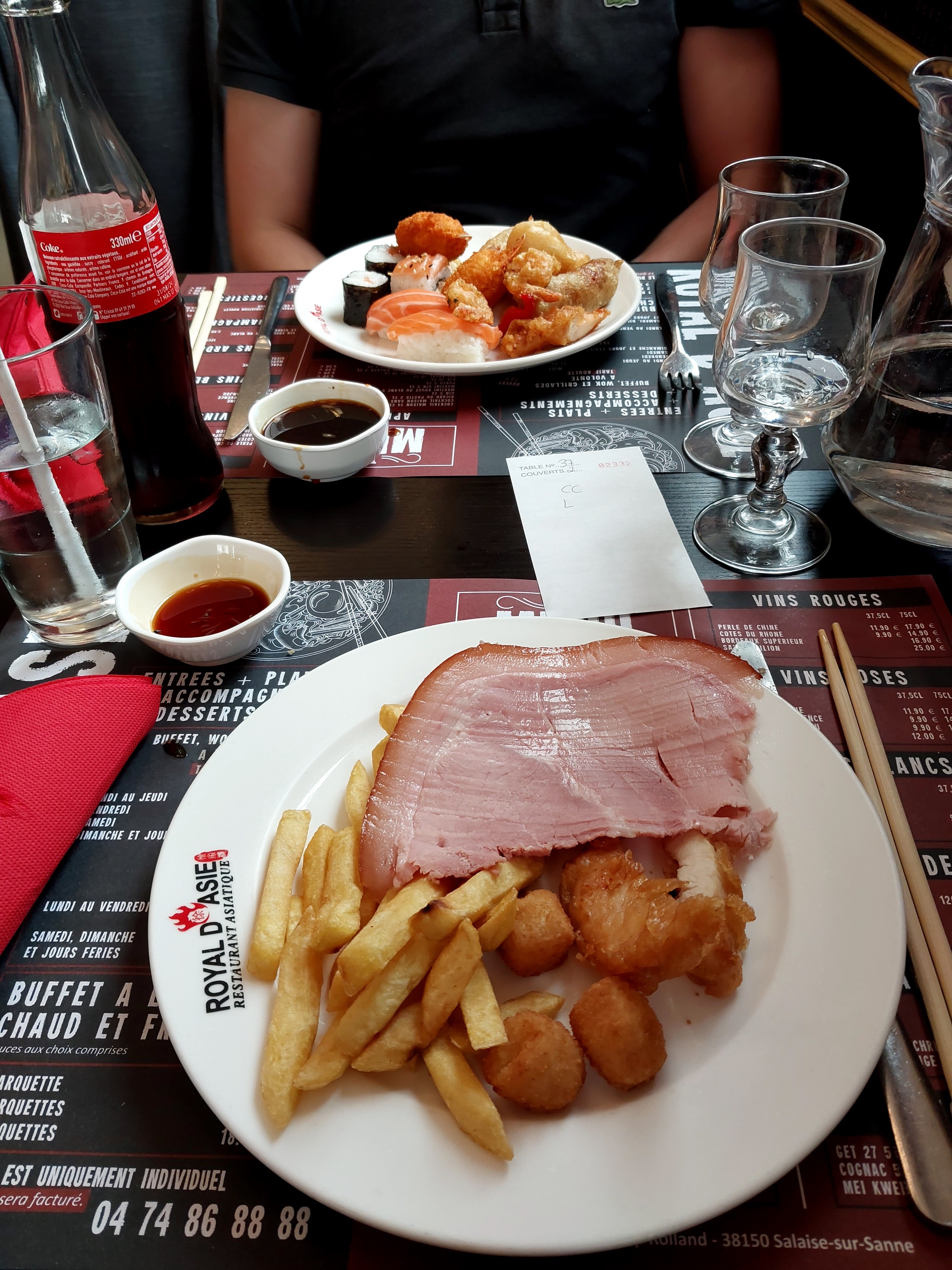 Bonjour restaurant très propre .On vous débarrasse au fur et à mesure .Dommage que les entrées soient pas assez fraîches .On dirait un problème de froid .Je suggère de faire vérifier votre banque j ai un doute ! Même pas de rouleau de printemps en cette saison chaude ce serait été la bienvenue ! viande cuite sous vos yeux ,c est sympa Pour les déserts ils sont pas frais .Quel dommage en cette chaleur heureusement qu il y a les glaces pour vous rafraîchir ! Les plats ne sont pas indiqués donc à vous de deviné.Vous chercher les MMS a quoi ils sont Porc au caramel dégueulasse la sauce immangeable... Je ne recommande pas ce Royal d Asie car rien n était frais ....merci