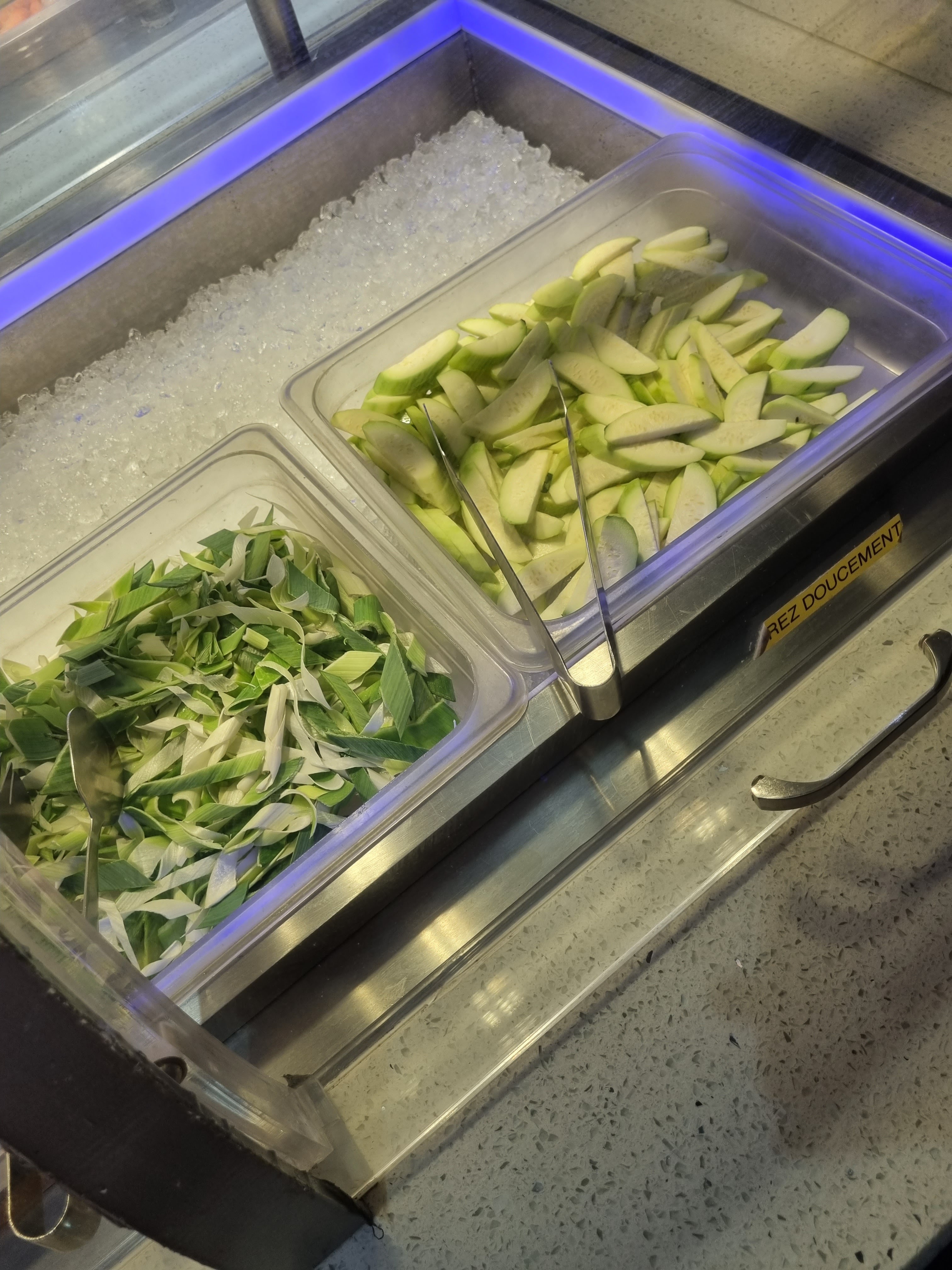 Le buffet a quelques petits plats sympathique mais dans l'ensemble les plats ne sont pas super, très gras... Huile de friture visiblement pas changer regulierement... Il faudrait également des couvercles sur le buffet pour une question d'hygiène