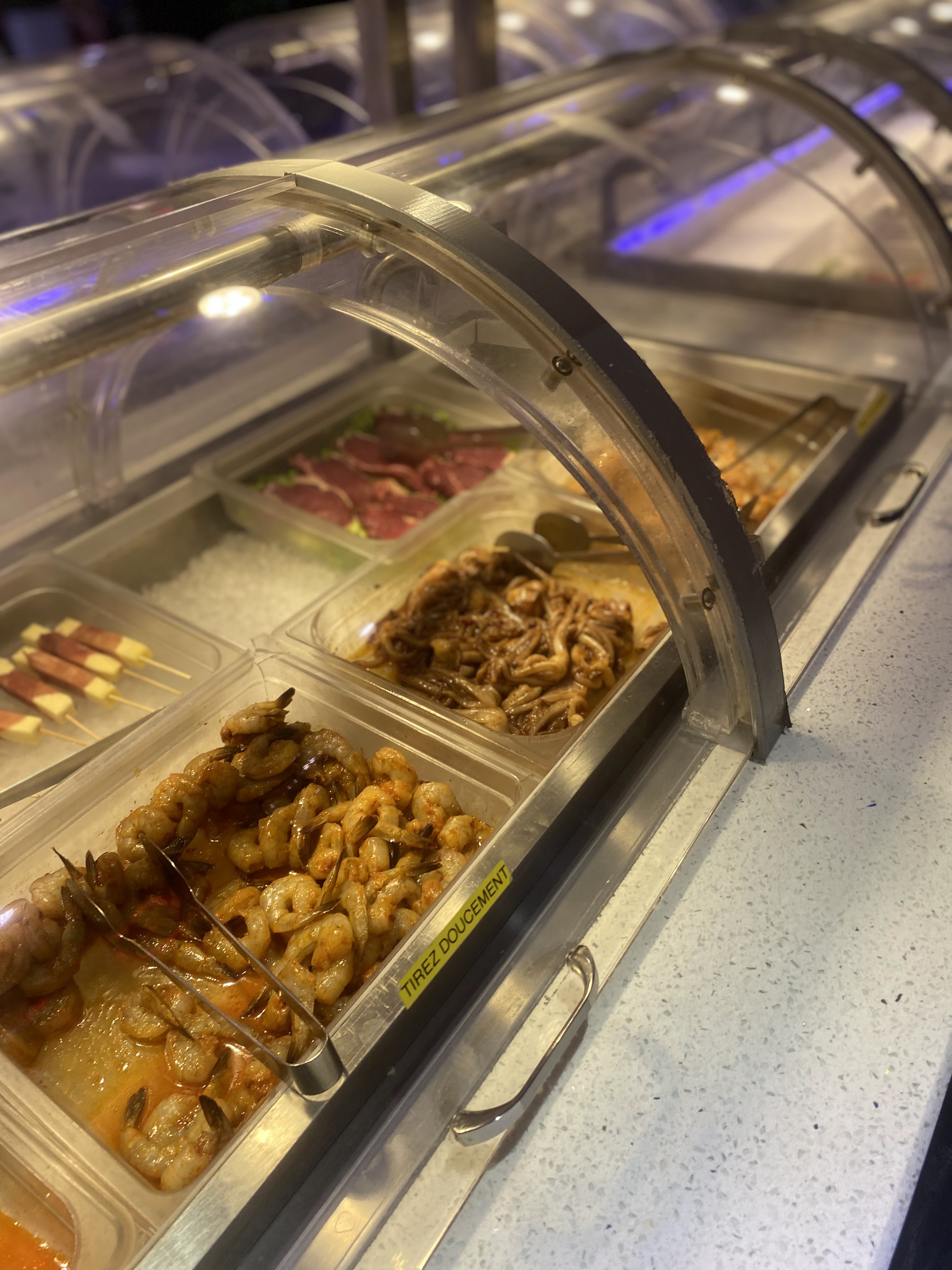 Après plusieurs années sans y être retournée, j'ai été déçu par la qualité des plats proposé. Il y a moins de choix qu'avant et les plats sont bien moins savoureux. La plupart sont fades et les plats en sauces sont à peine chauds. Les desserts ne sont pas terribles, même les perles de coco n'ont aucun goût. Les sushis et les brochettes bœuf fromage sont tout de même bonnes mais le rapport qualité prix n'est pas satisfaisant selon moi.