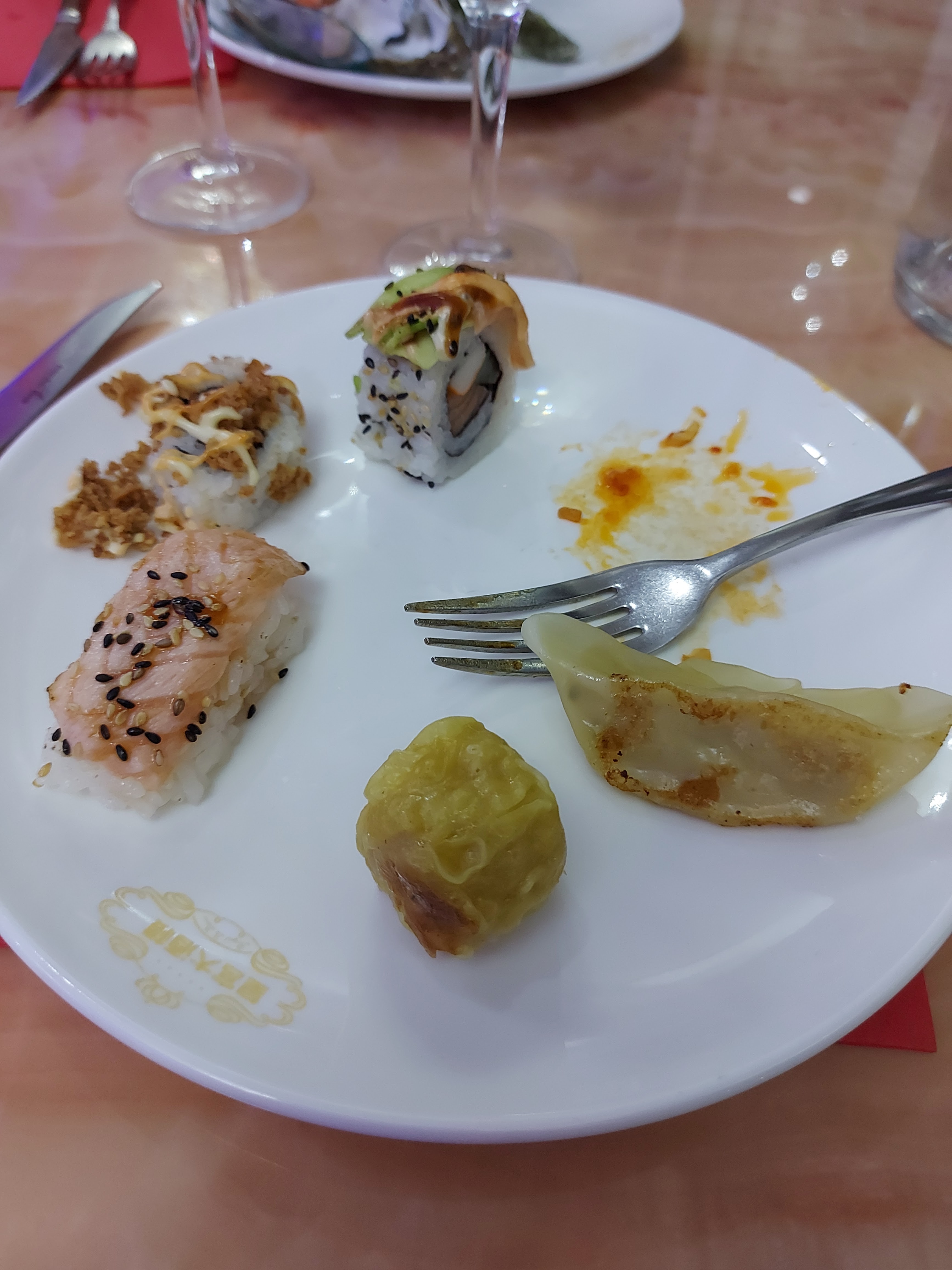 Je modifie mon avis publié il y a 4 ans... Je ne sais pas si cela à changé de propriétaire entre temps, mais il y avait moins de choix asiatique, et trop de choses non asiatique pour les entrées et les plats de résistances. En plus ça n'était pas chaud, et pas très frais aussi bien au goût que visiblement... J'espère que je ne serais pas malade... Les verres et couverts sont plein de traces, les sanitaires aussi. Le serveurs qui se balade avec son chariot de restes de nourriture en passant à côté de vous ce n'est pas génial non plus. D'autant plus que son pantalon était tout sale... Bref... On y allez régulièrement depuis quelques années mais là c'est terminé. Cela s'est beaucoup dégradé...