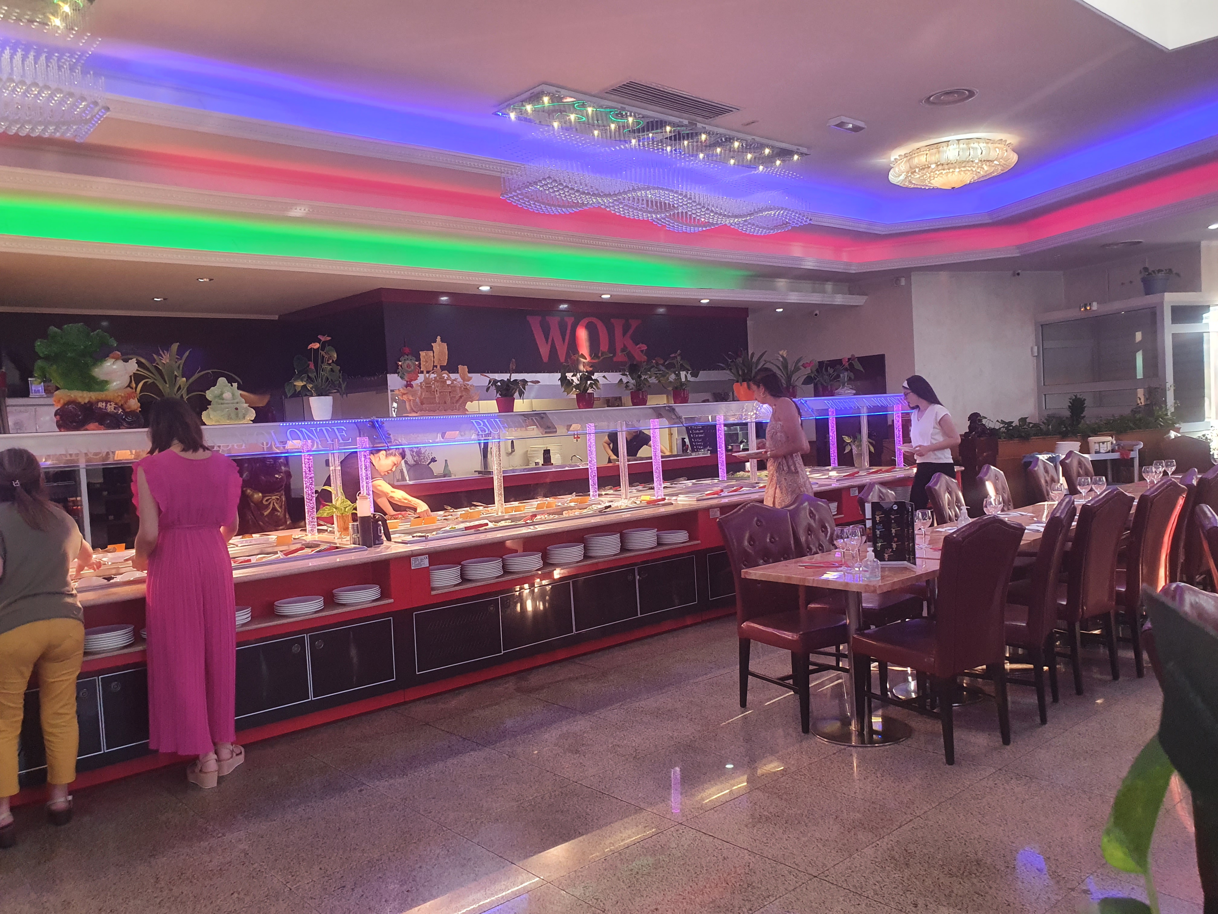 Bon buffet à volonté, on y trouve un peu de tout : sushis/makis, nouilles sautées à la demande, nems, samossas, nuggets, riz cantonais, légumes crus (vous pouvez composer votre salade vous même) ou cuits, brochettes... Les desserts sont cependant très industriels (fruit au sirop (boîte), donuts, brownies, éclairs etc...) L’endroit est la plupart du temps très peuplé, il vaut mieux réserver si vous voulez être sûr d’avoir une table !