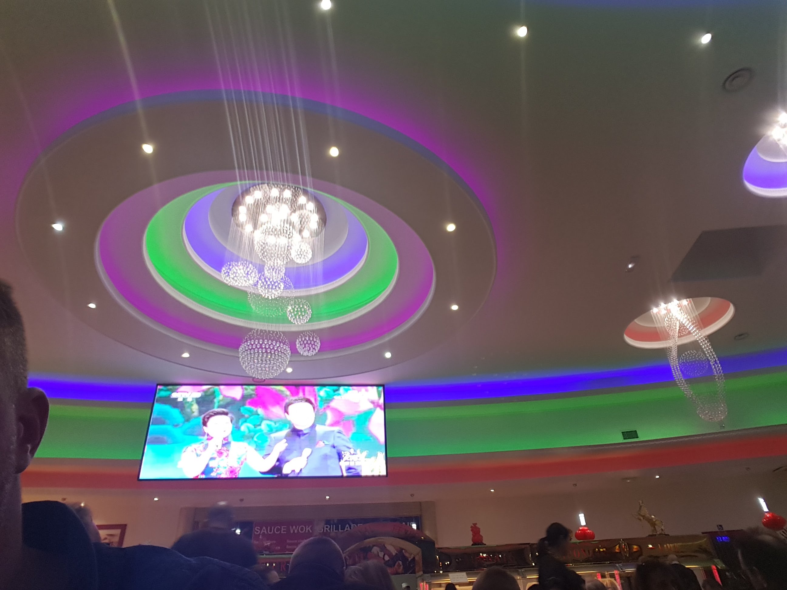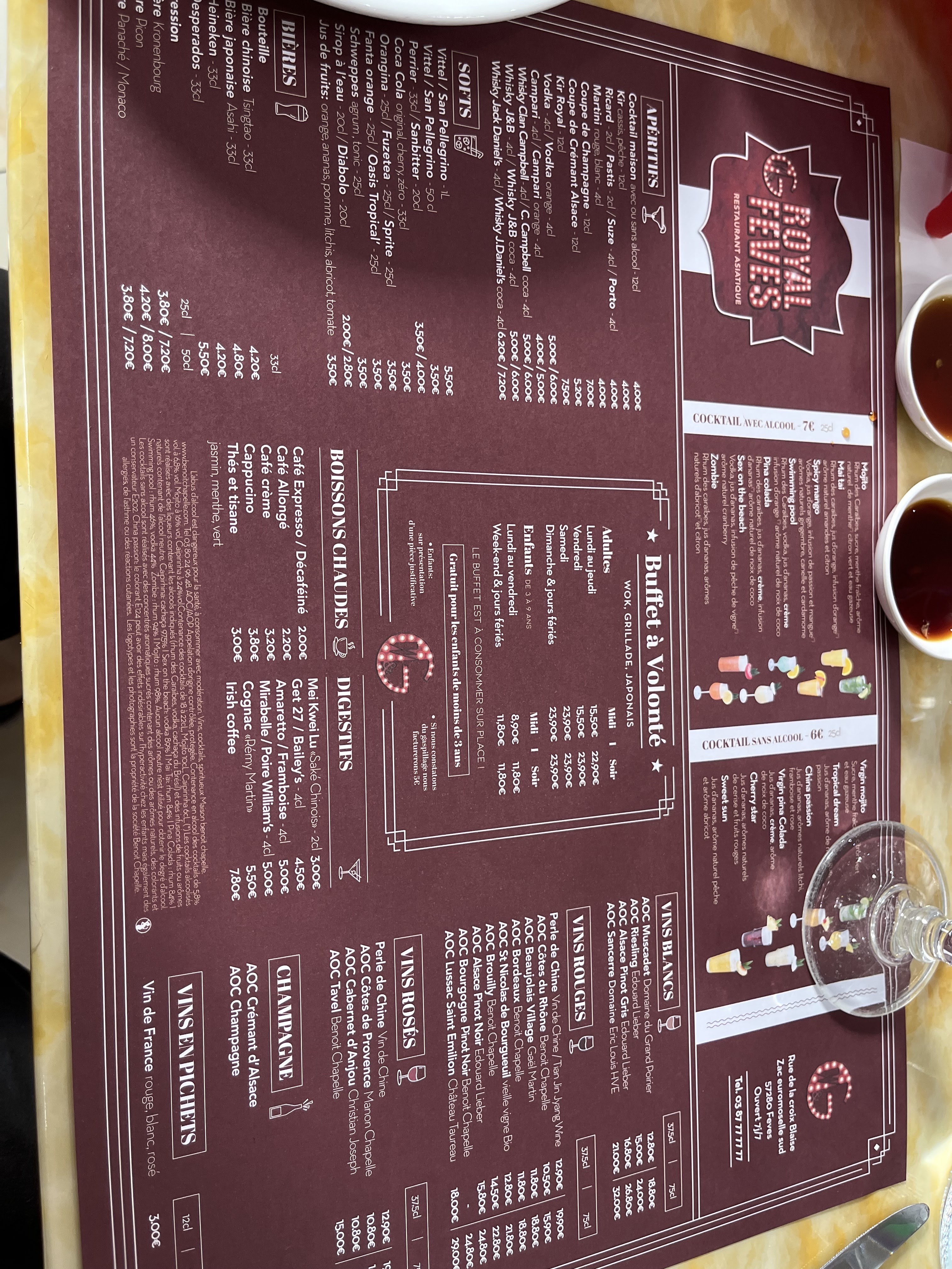 Jolie décor, pour le buffet il a du choix ,viande, poisson, crustacé ,riz,pates,raviolis chinois, et des sauces.il y a des sushis, pour le dessert glaces différents parfums, oeufs a la neiges,éclair, gâteau à la mousse différents parfums, glaces pour les petits,pop-corn, café, boissons avec alcool ou sans alcool,le personnel ne s occupe pas trop des clients ,mais bon il n n'arret pas des que les tables se vident ils débarrassent tout de suite, car ils y a quand beaucoup de gens qui attendent,