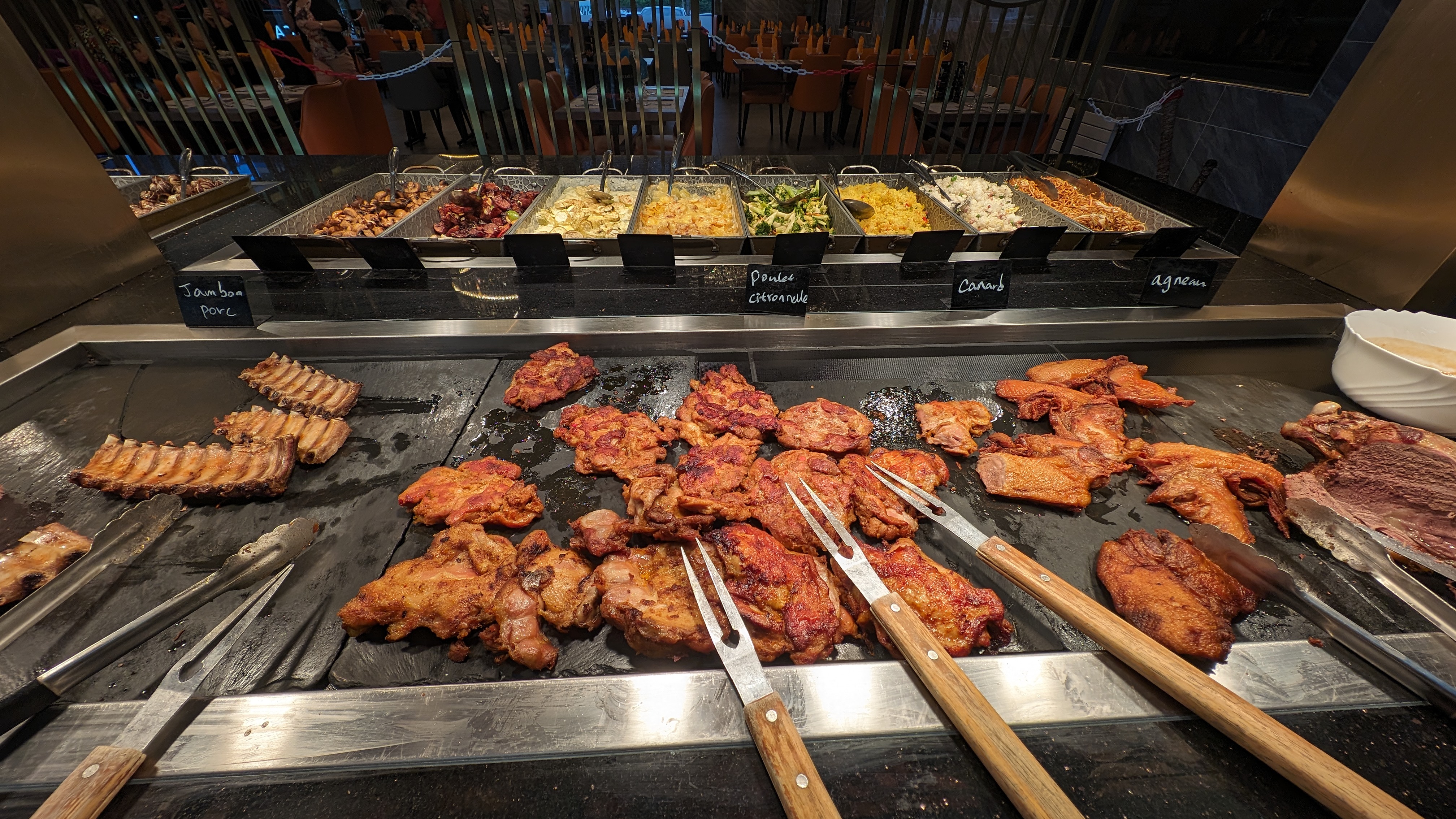 Un restaurant flambant neuf avec une formule a volonté gigantesque. Il y a un choix énorme . Déco sympa. Service souriant. Boisson a prix raisonnable. Parquin suffisant.
