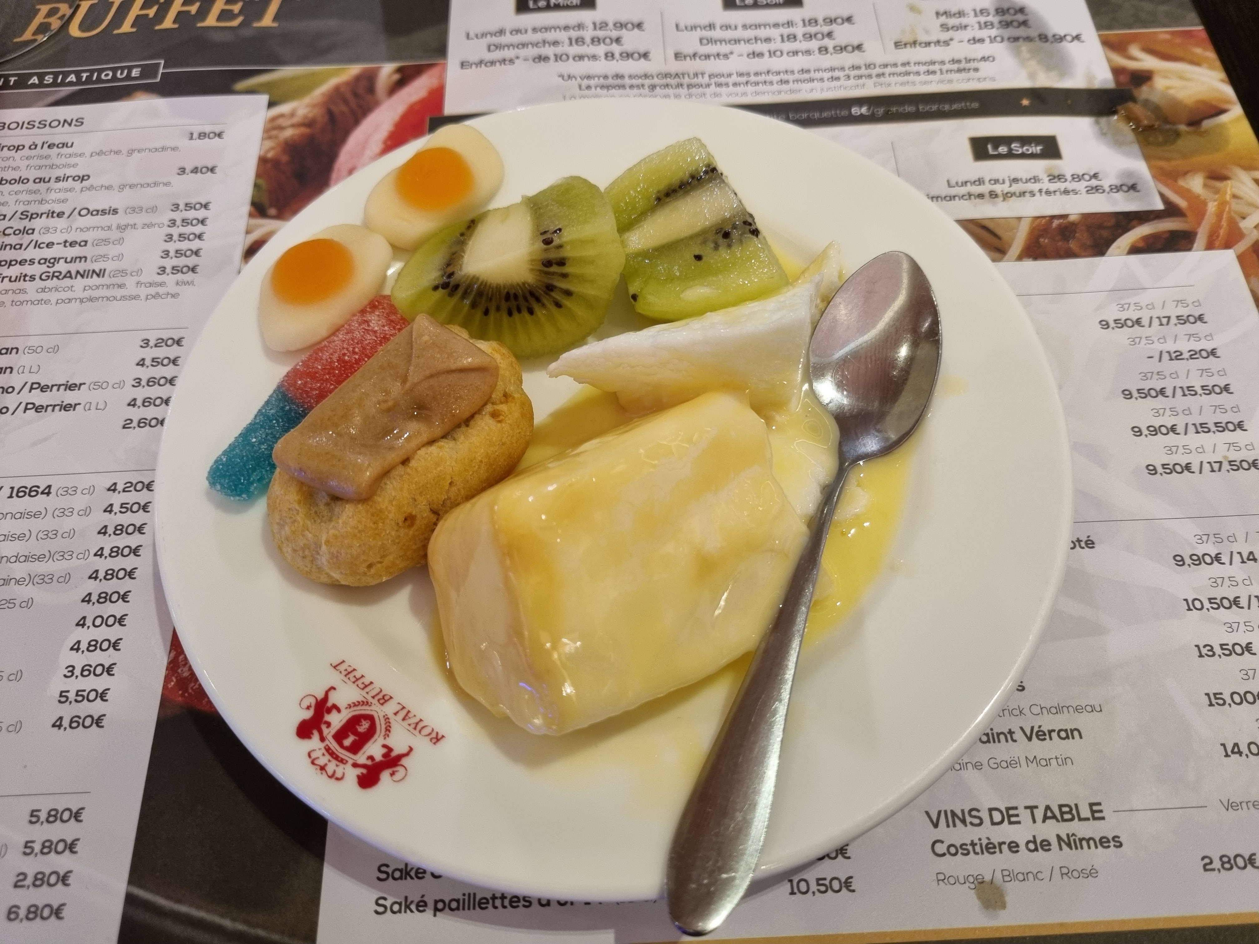 Du choix dans les entrées et les plats, cependant très salé dans l'ensemble. Nous avons trouvés que les produits proposés pour composer les wok étaient de piètre qualités. Cuisses de grenouilles desséchées et trop cuites, galettes des nems très épaisses. Heureusement les desserts sont là pour laisser une note moins négative au repas.