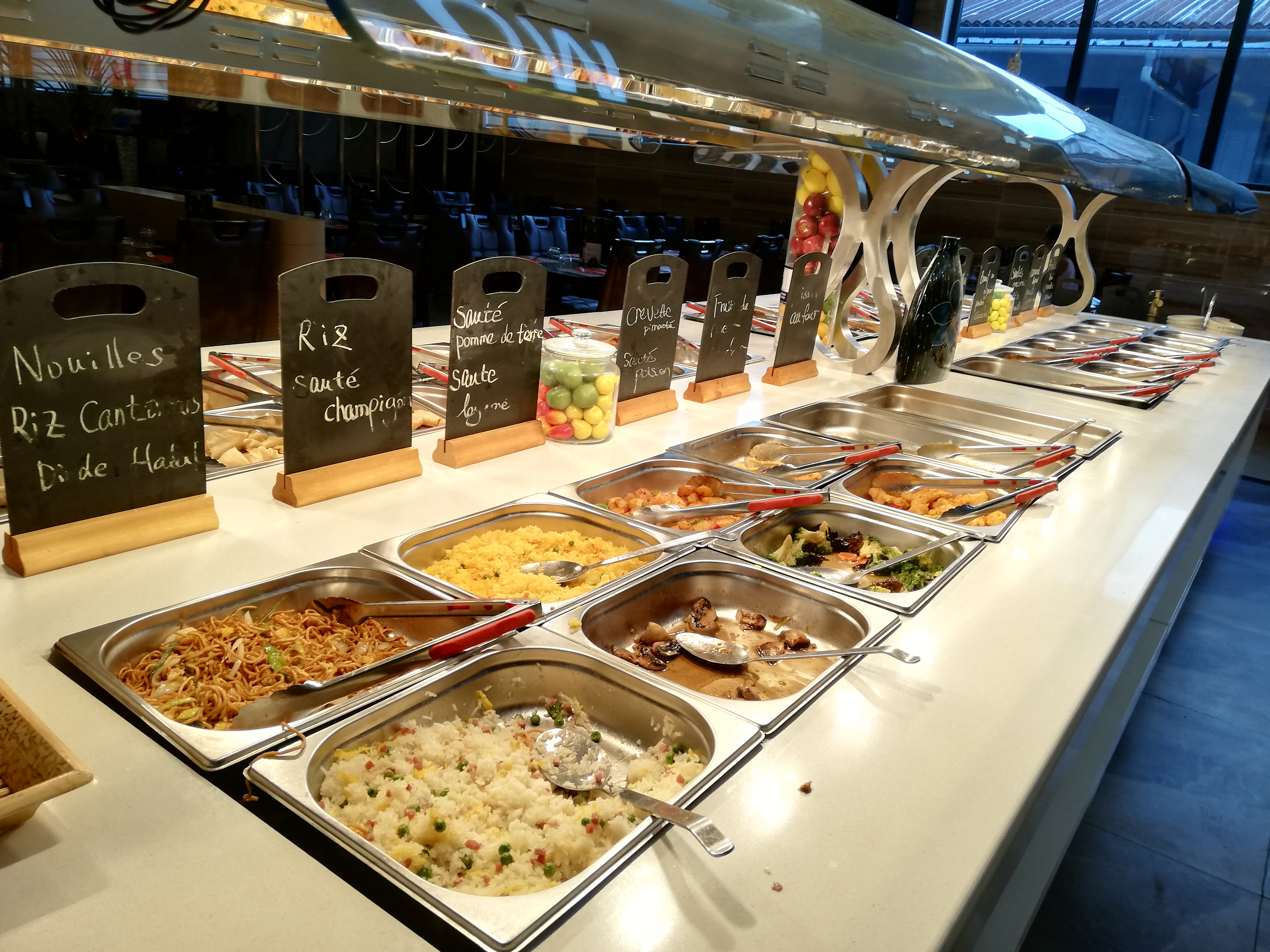 Le lieu est plutôt beau et bien aménagé. Un bel effort sur la décoration. Concernant la nourriture, il y a un large choix d'entrées, de friture, le wok est vraiment bien garni, et la partie sushi également intéressante avec des sushis originaux comme celui au matcha. Le tout étant plutôt bon. Seule déception et choses à améliorer pour les 5 étoiles, il manque un vrai buffet de dessert. Certes il y a du choix mais toutes les pâtisseries sont décongelées, plutôt sèches, et globalement pas bonnes du tout. autre petit axe d'amélioration enfin, il est compliqué du fait de l'organisation de circuler autour des buffets et entre les tables. Peut-être revoir les dispositions globale de tout ça.