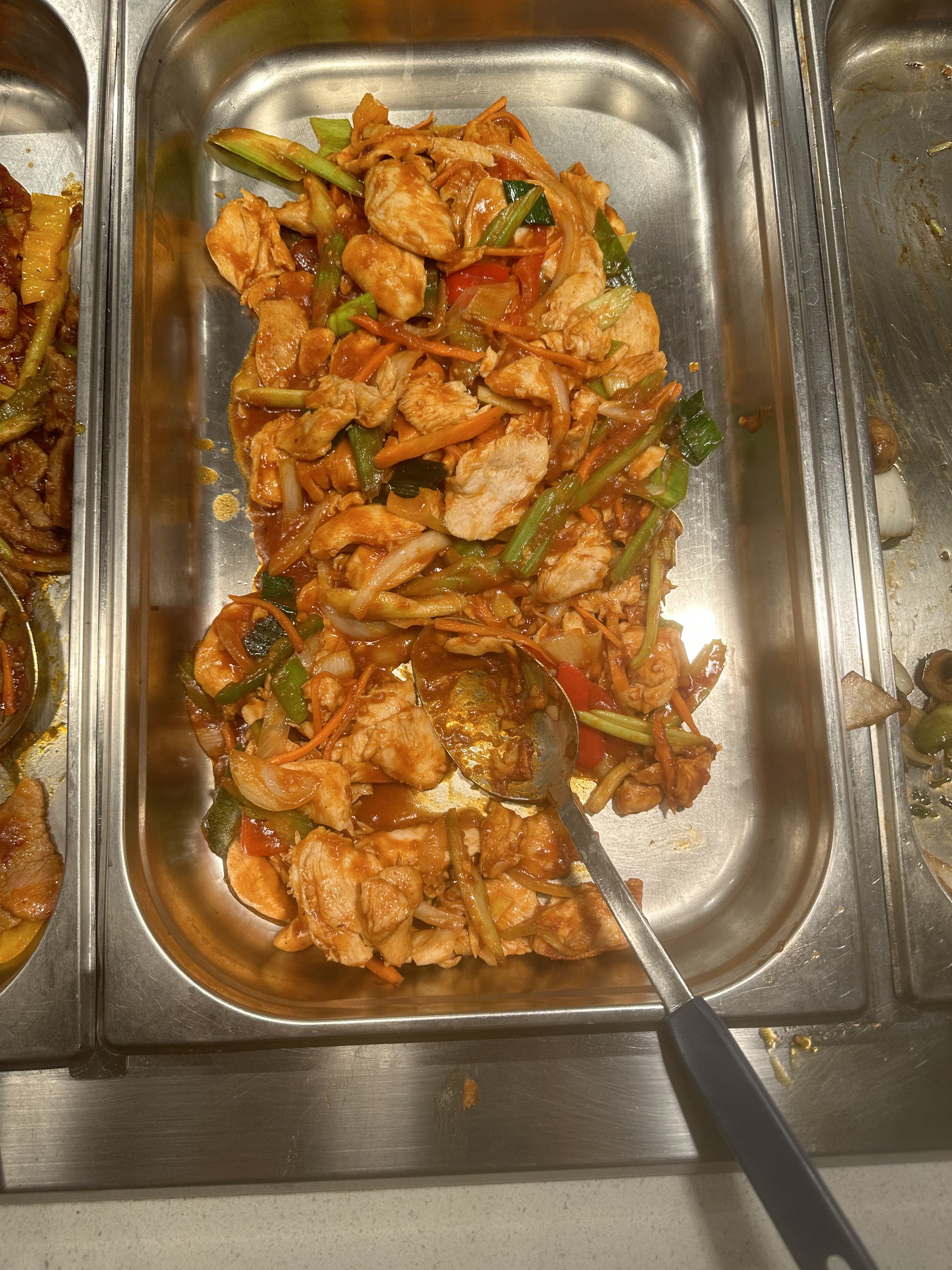 J'ai pris 2 too good to go Immangeable tellement ça pique et pourtant j'aime quand c'est épicé! Ce serait bien de le préciser car on ne s'attend pas à ça d'un restaurant chinois à volonté. Pour ceux qui veulent prendre un too good to go là bas: on ne le prépare pas nous même, 2/4 de riz et 1/4 de légumes et 1/4 de viande avec sauce piquante à en boire des litres d'eau pour tout le monde.