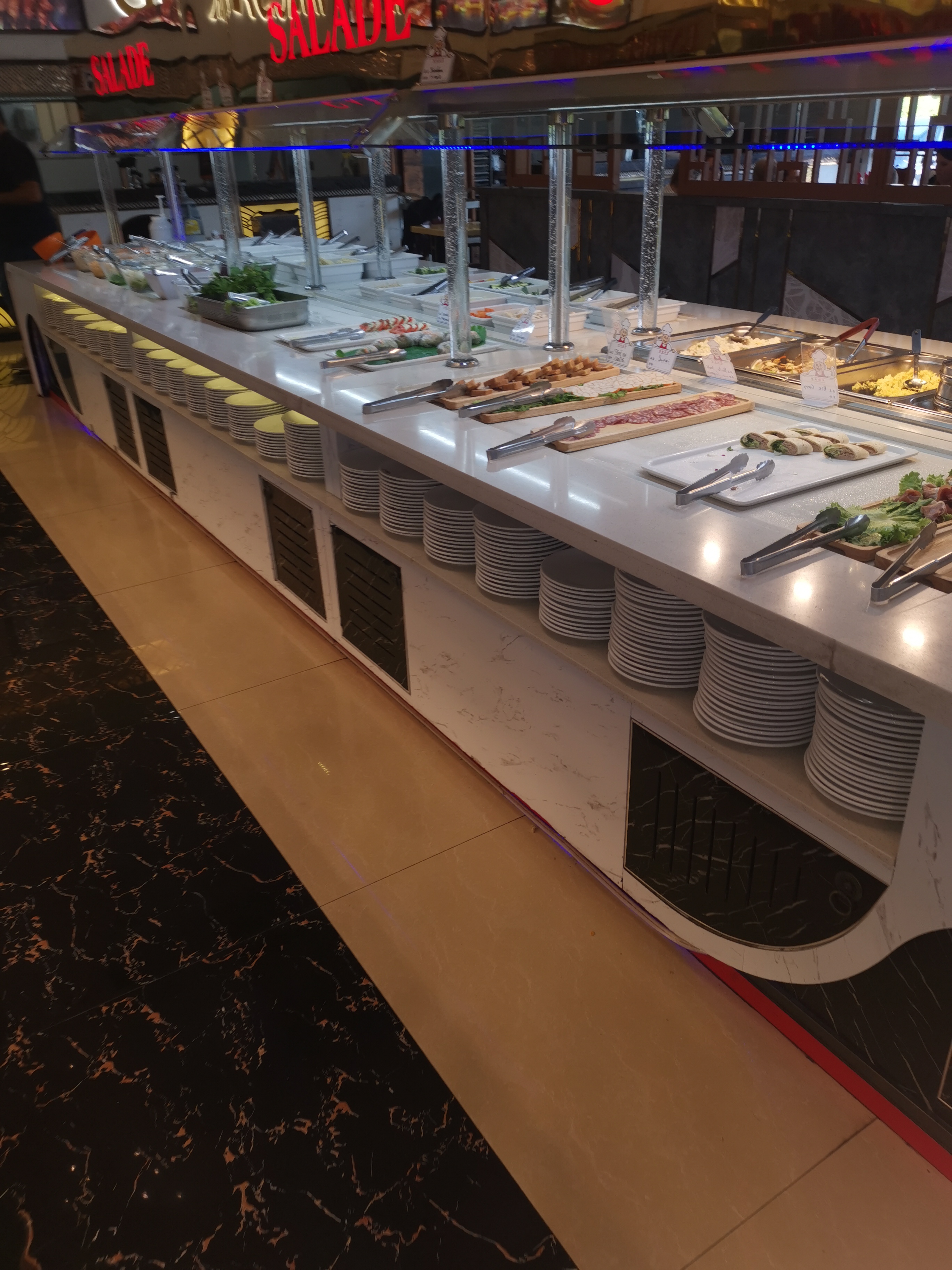 Excellente expérience pour une 1 ere fois le buffet est top bien Garni et assez grand large choix ,produits frais ,salades,desserts parfait . Je recommande de en plus le poulet est halal.
