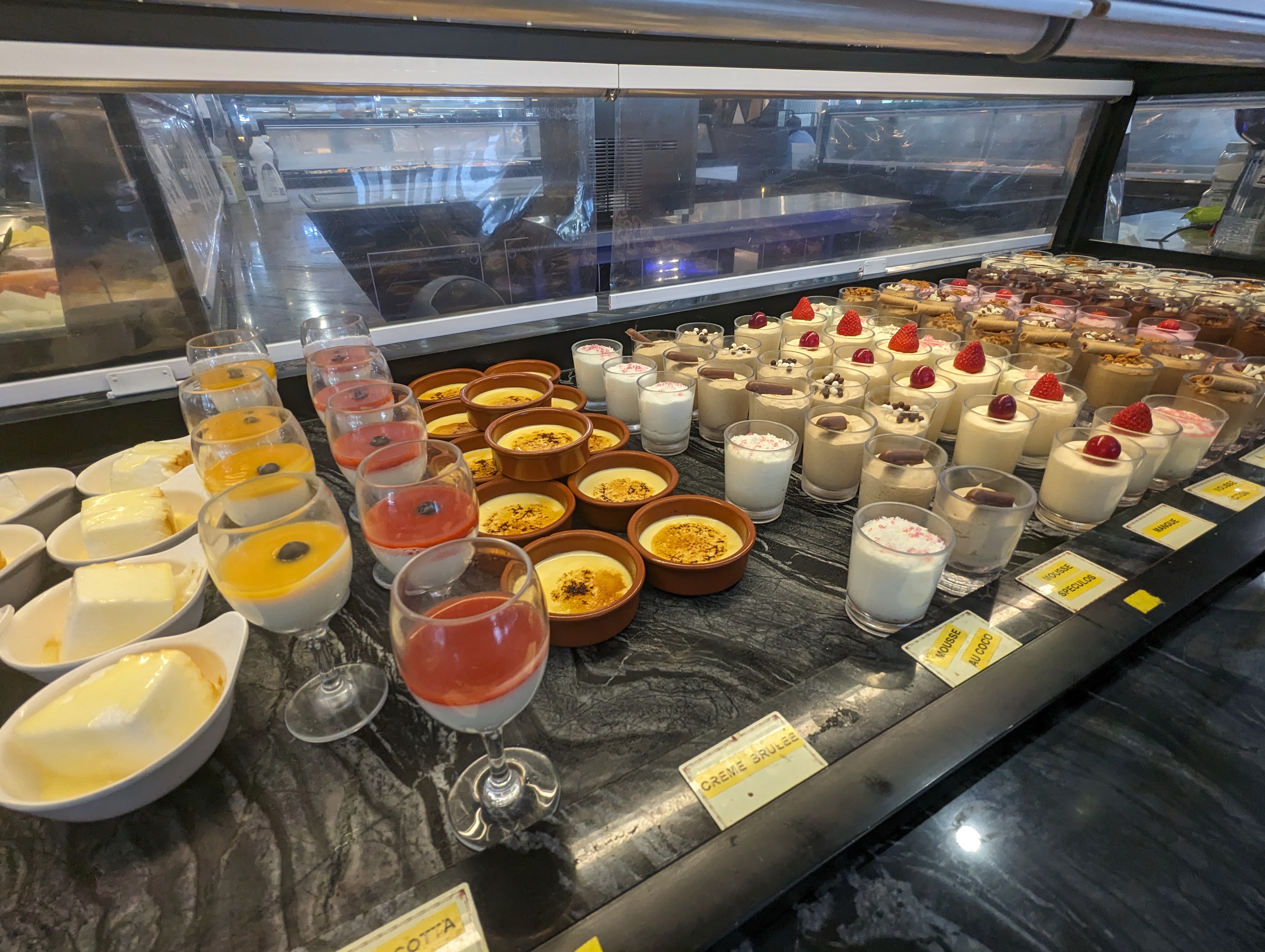Les desserts sont juste beaux aucun goût ,t exture d éponge,dommage pour les gourmands sucré. Sinon ça va le reste salé.