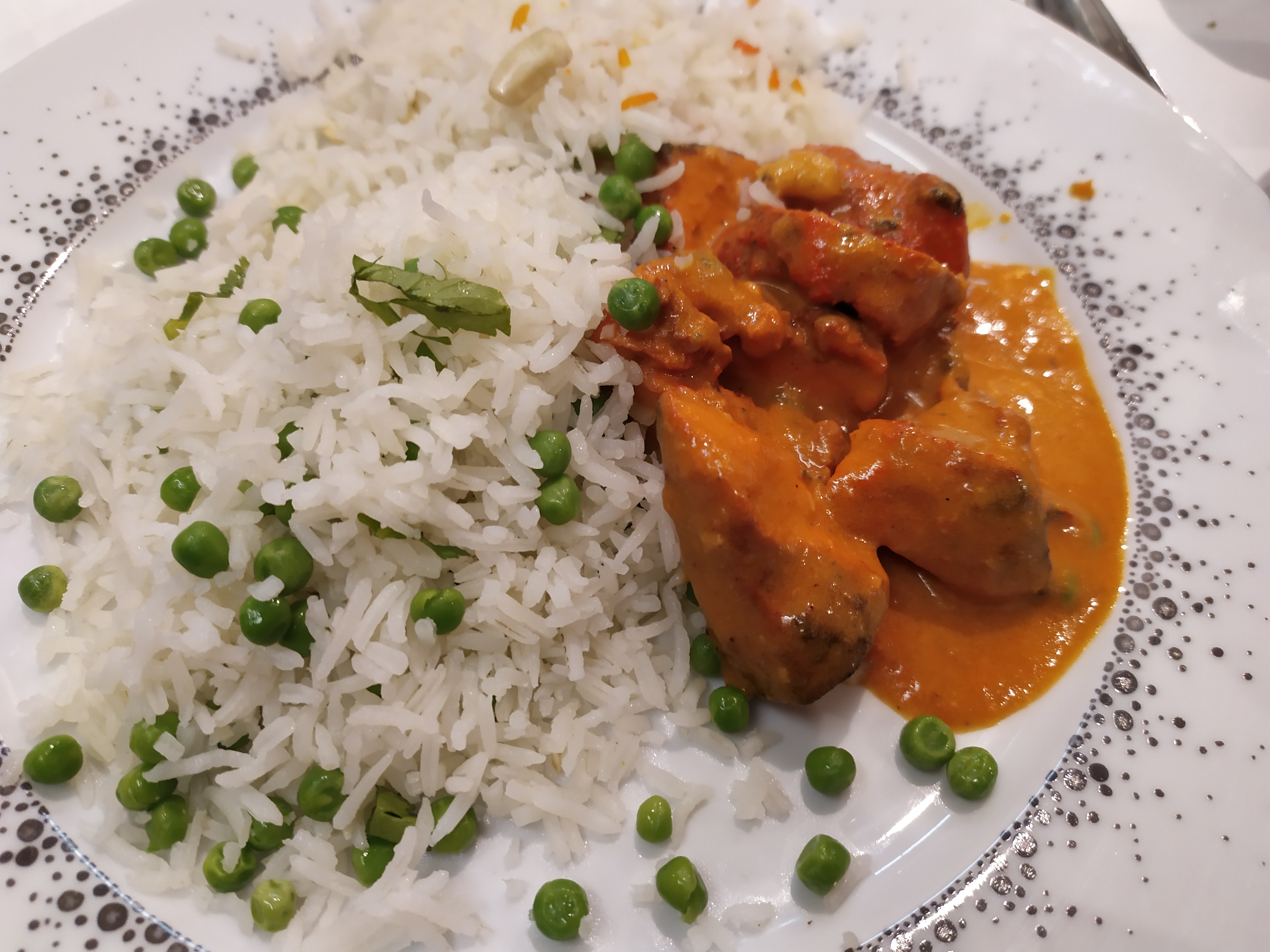 L’agneau sahi korma était bon mais il manquait une pointe de coco. Par contre pour le riz je m’attendais à du riz long fin et safrané, pas du simple riz basmati. Et la sauce verte était trop citronné.