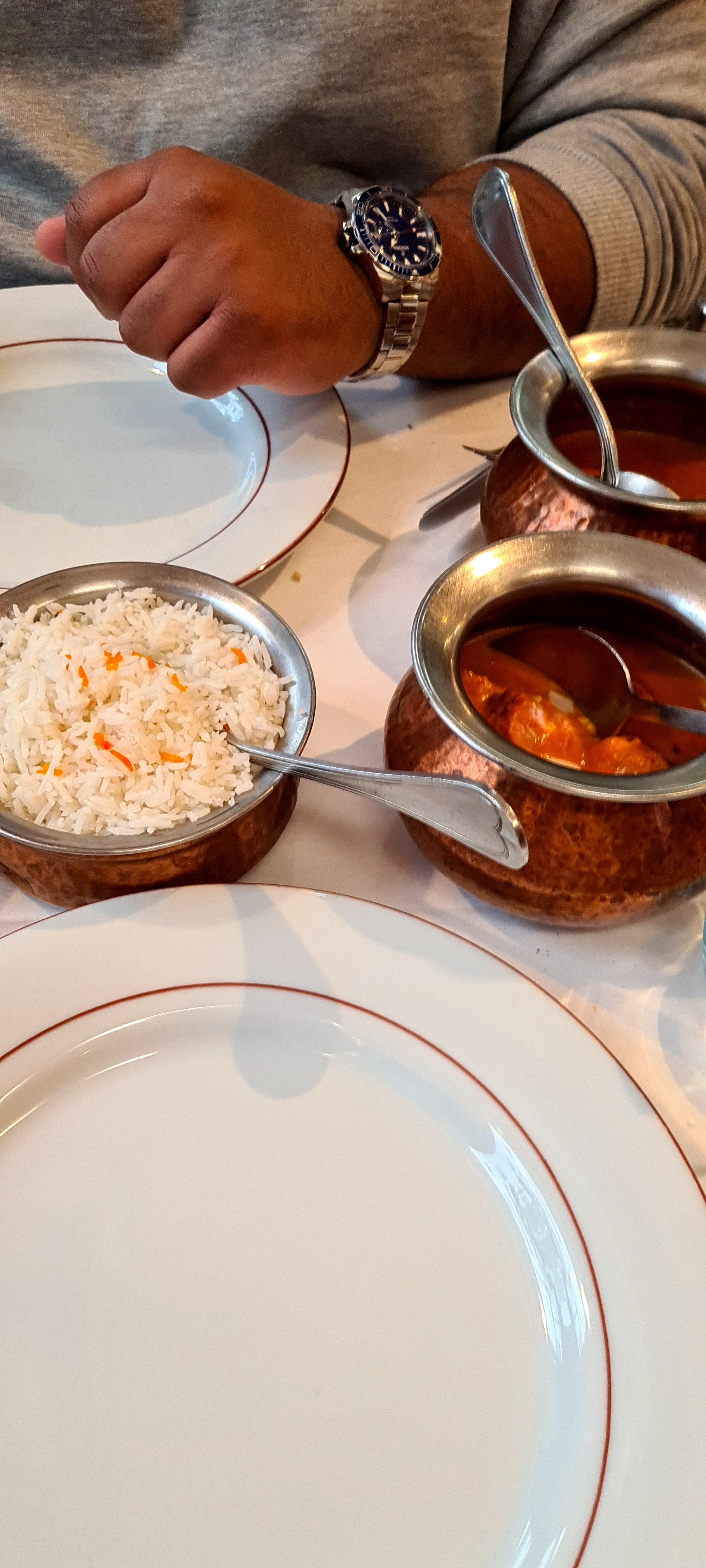 Restaurant calme, serveurs souriants et à l'écoute. On y mange très bien, il y en a pour tous les goûts. Idéal pour nos reteouvailles entre amis d'hier et pour toute occasion. Moi qui ne mange pas souvent indien j'y reviendrais avec plaisir.