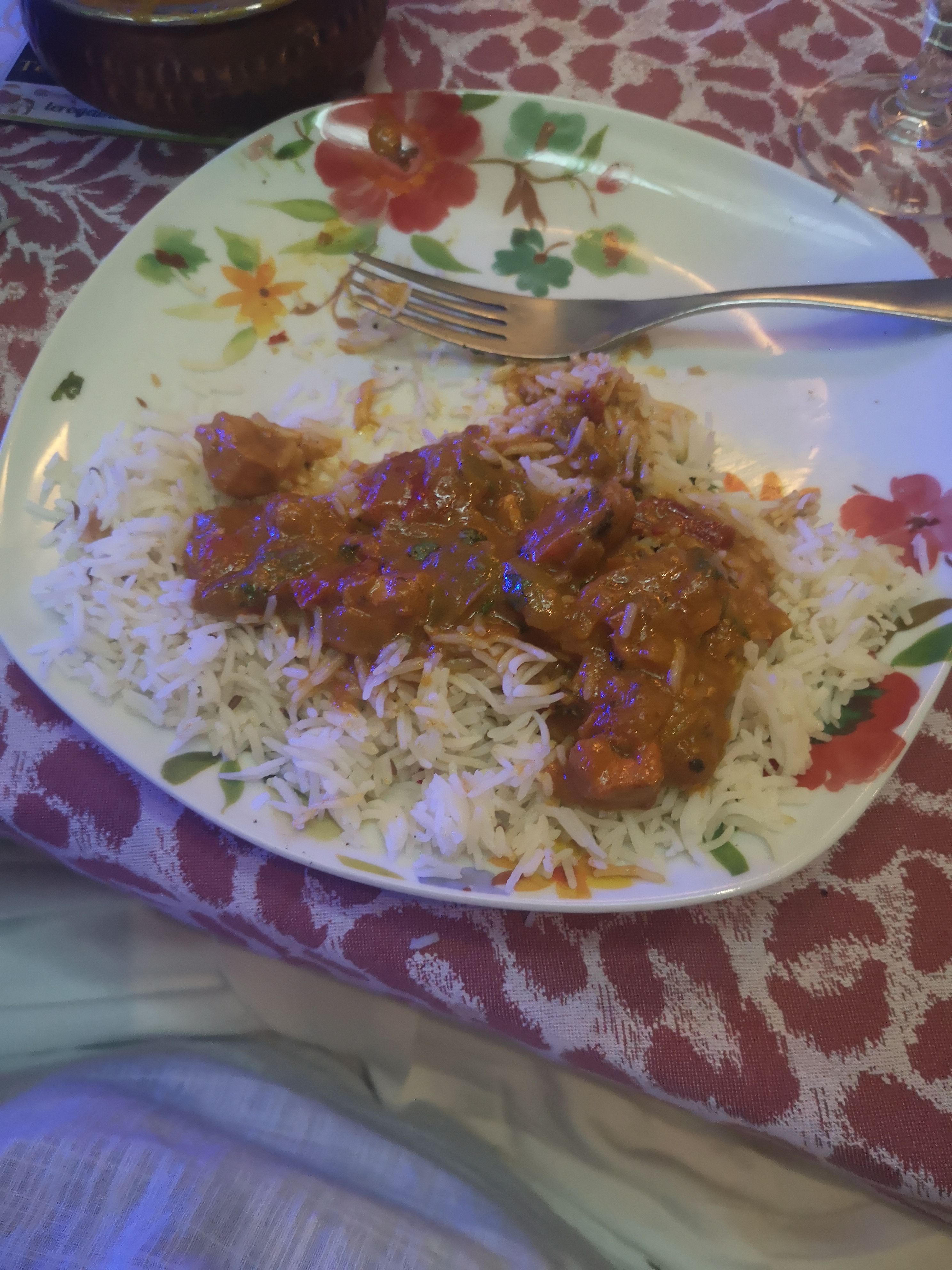 Dans l'ensemble ça va la sauce curry liquide eau j'ai pas connu comme ça les sauces au curry le reste était bon naans bon mais sauces très liquide j'ai arrosé mon riz d'eau jaune les morceaux de poulet coupé en petit des je préfère qu'il y en ai peu mais consistant que pleins de mini morceaux qu'on voit a peine. En indien j'ai manger mieux . A amélioré dans l'ensemble. Petit geste café gratuit ou thé à la fin du repas 🤙